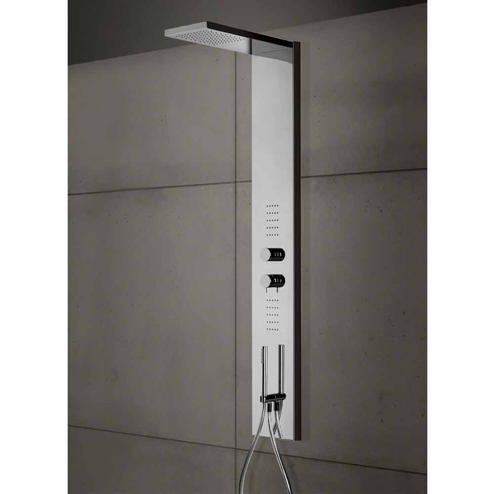 Columna de ducha de panel de acero de tres salidas con rociador tipo lluvia, producto de alta calidad Made in Italy.