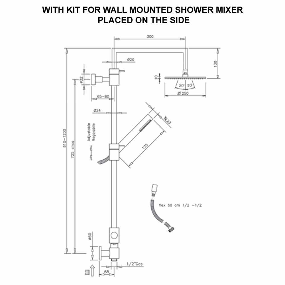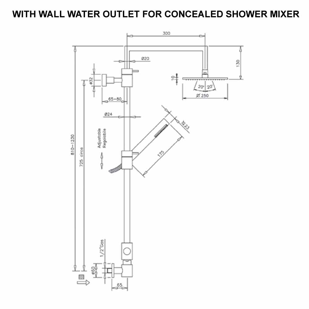 - Rociador de ducha: 250x250 mm.