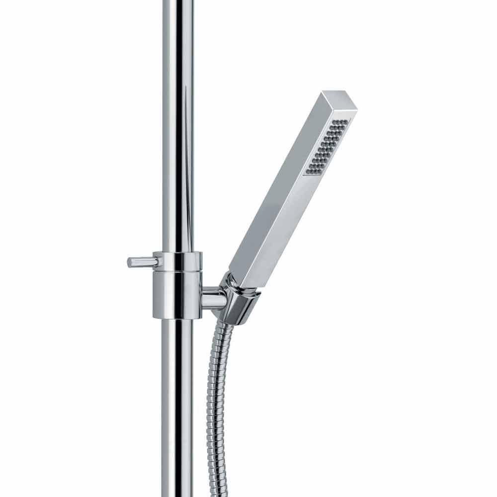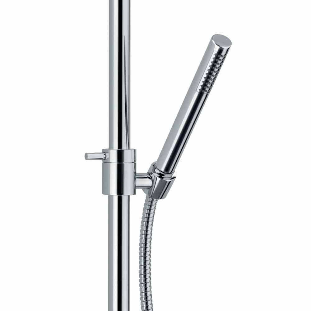 funcionalidad , obteniendo así una columna de ducha tan bonita y refinada de ver como práctica y fácil de usar. El soporte deslizante permite regular la altura de la teleducha, mientras que la manguera de 150 cm permite utilizarla de forma totalmente manejable y cómoda.