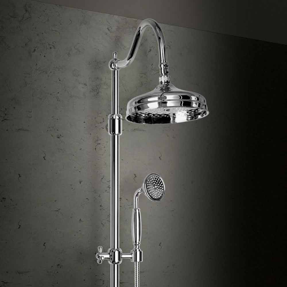 Columna de ducha de diseño clásico en latón con rociador y teleducha, elegante artículo Made in Italy.