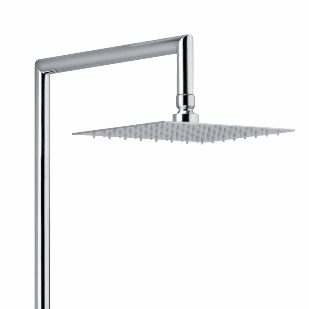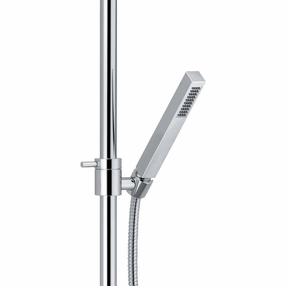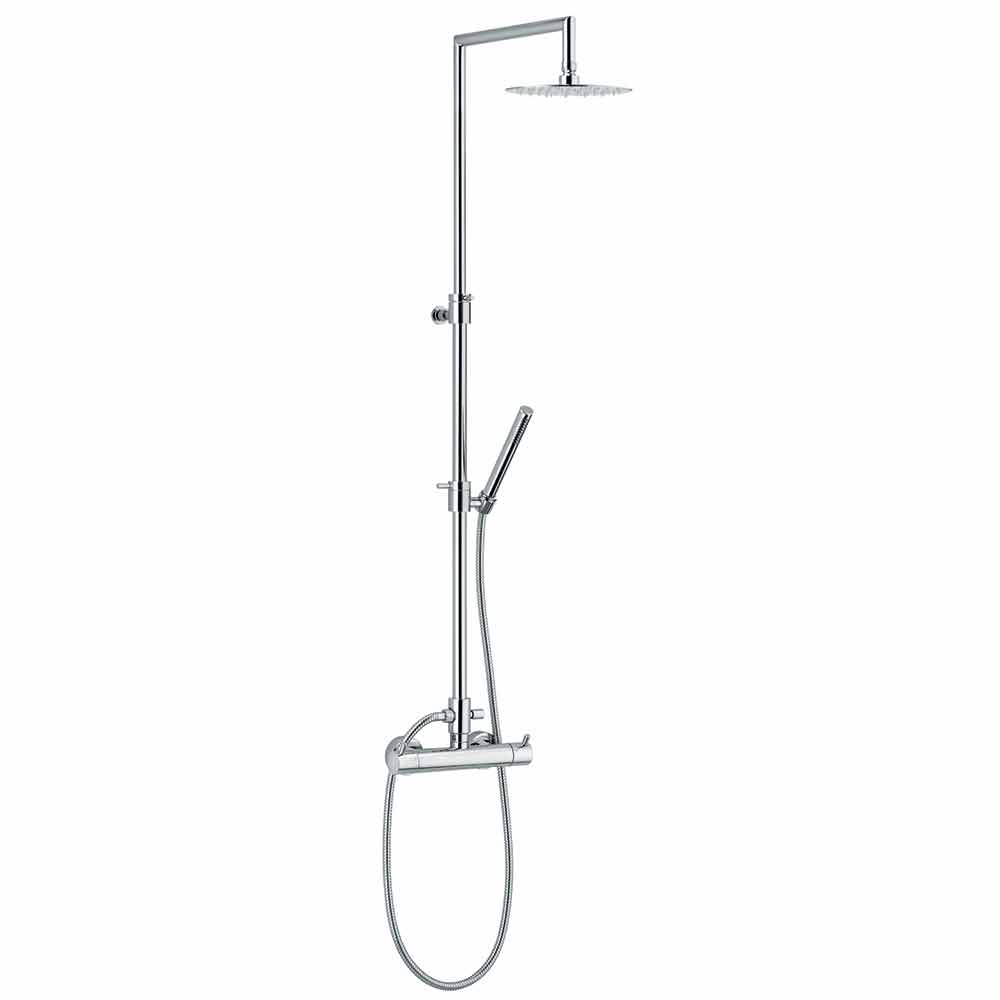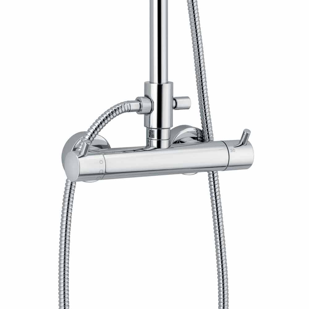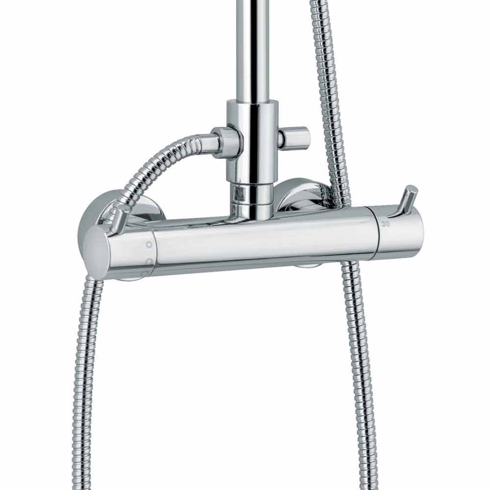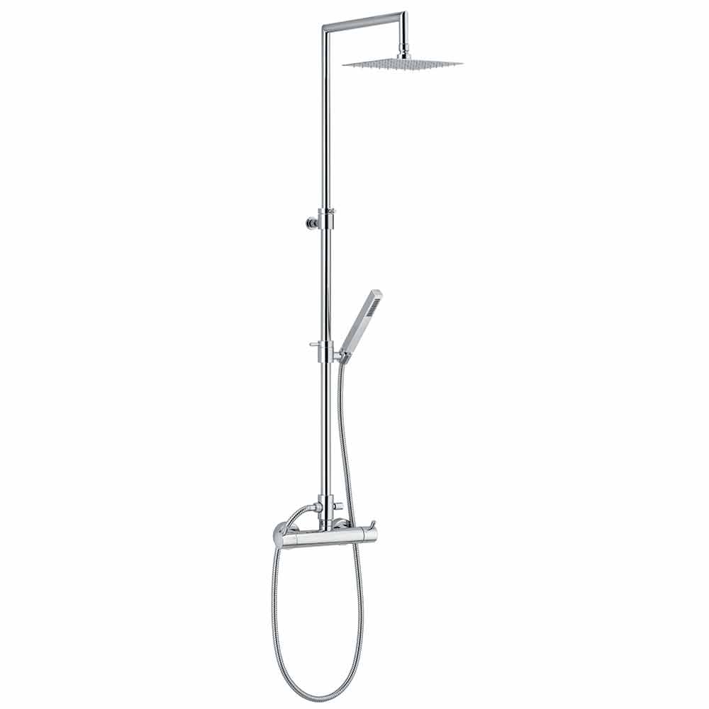 Columna de ducha con mezclador termostático fabricada en latón cromado con accesorios en acero inoxidable y ABS .
