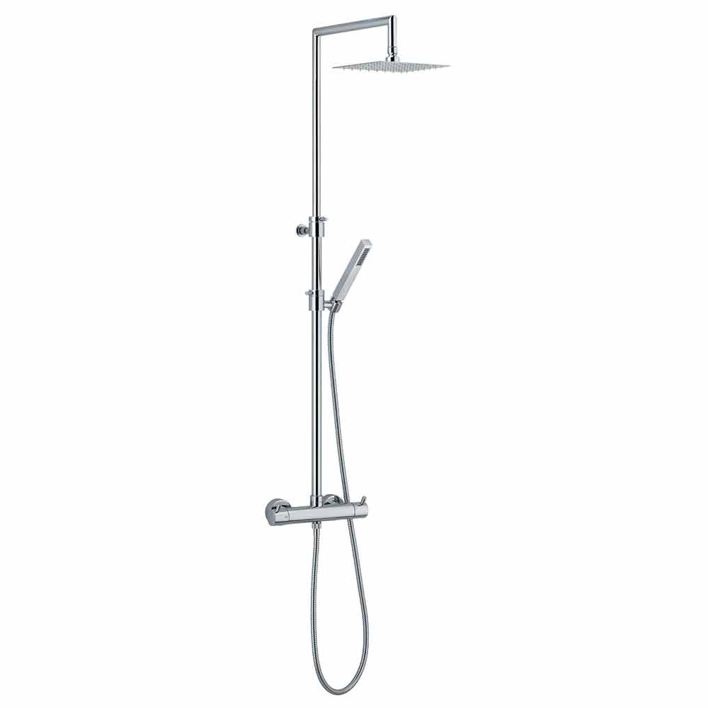 Columna de ducha moderna Made in Italy con termostato y desviador integrado en latón cromado con accesorios de acero y ABS .