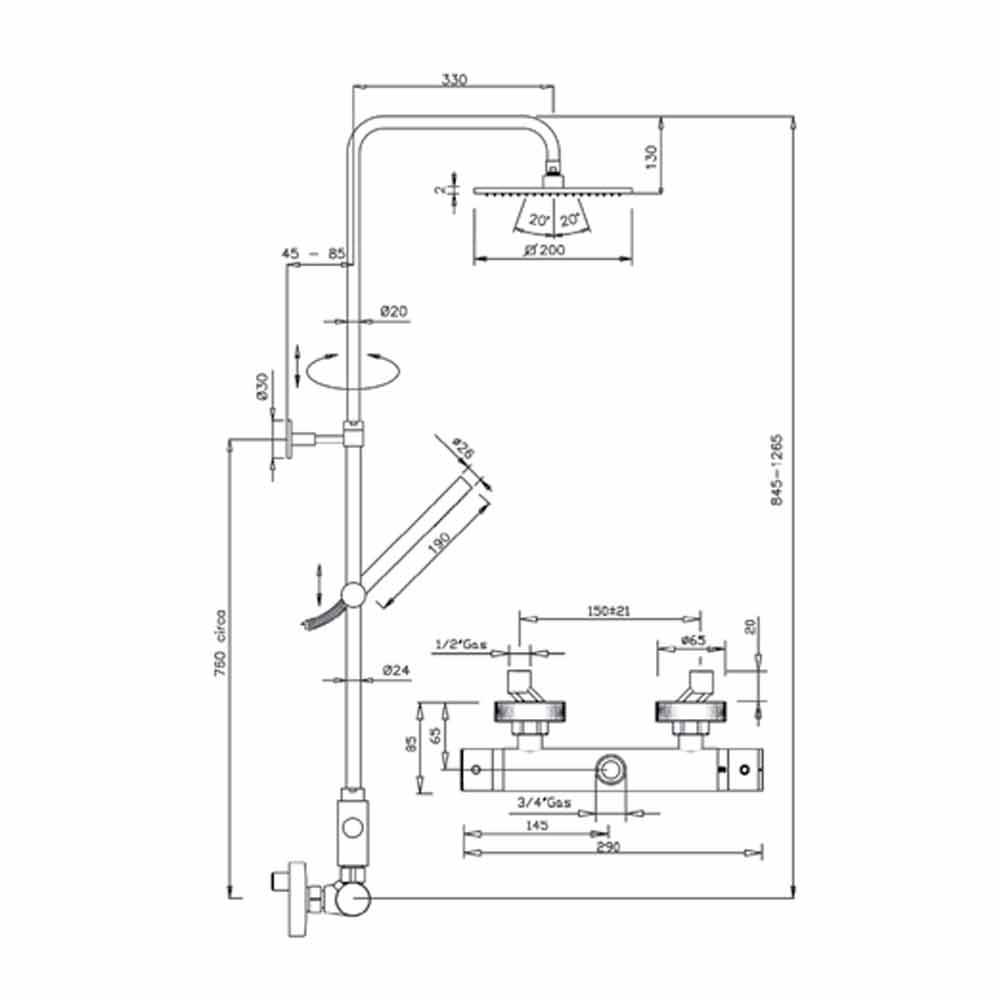 Columna de ducha en latón cromado, acero y ABS de diseño moderno Made in Italy.