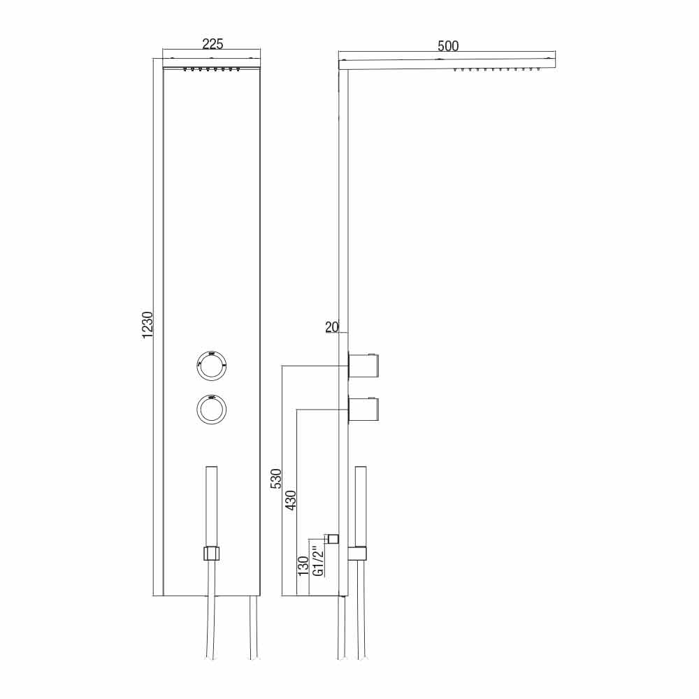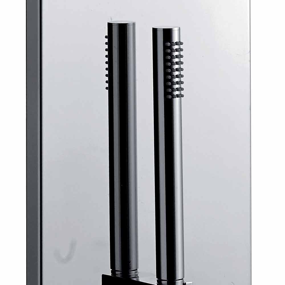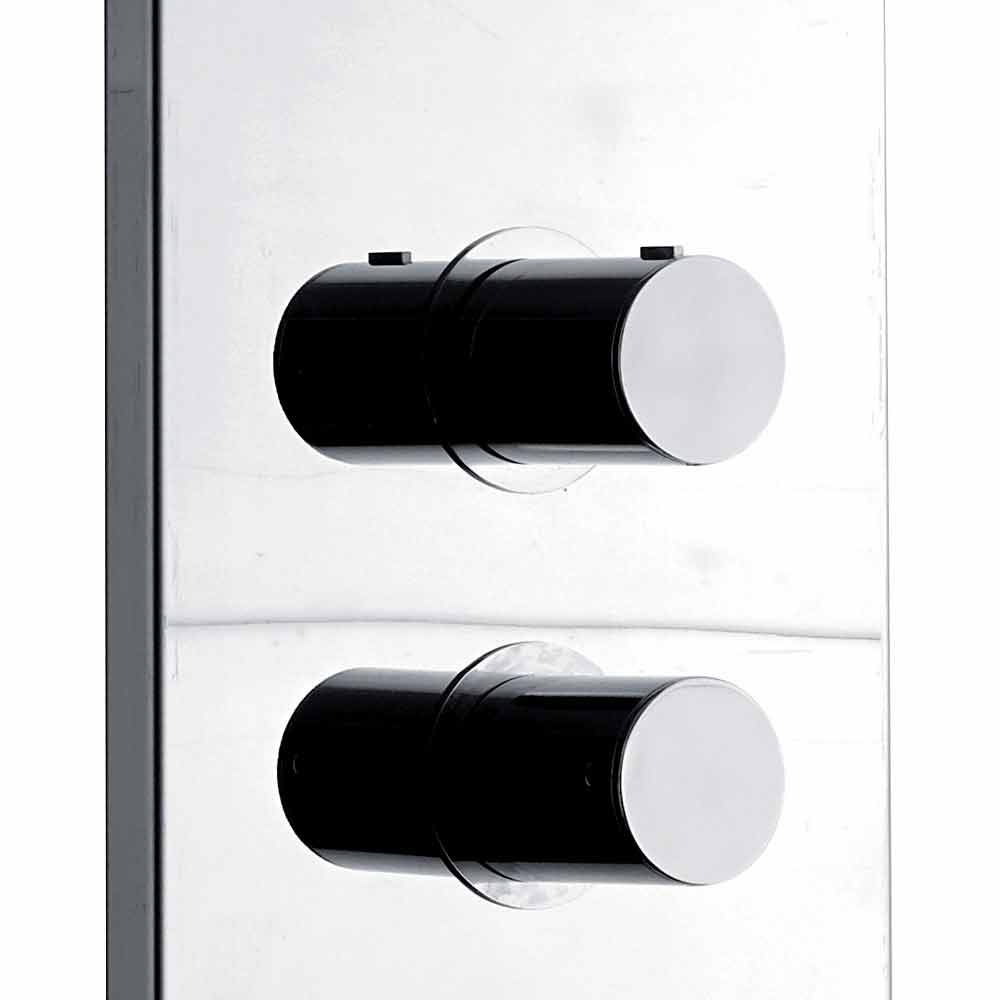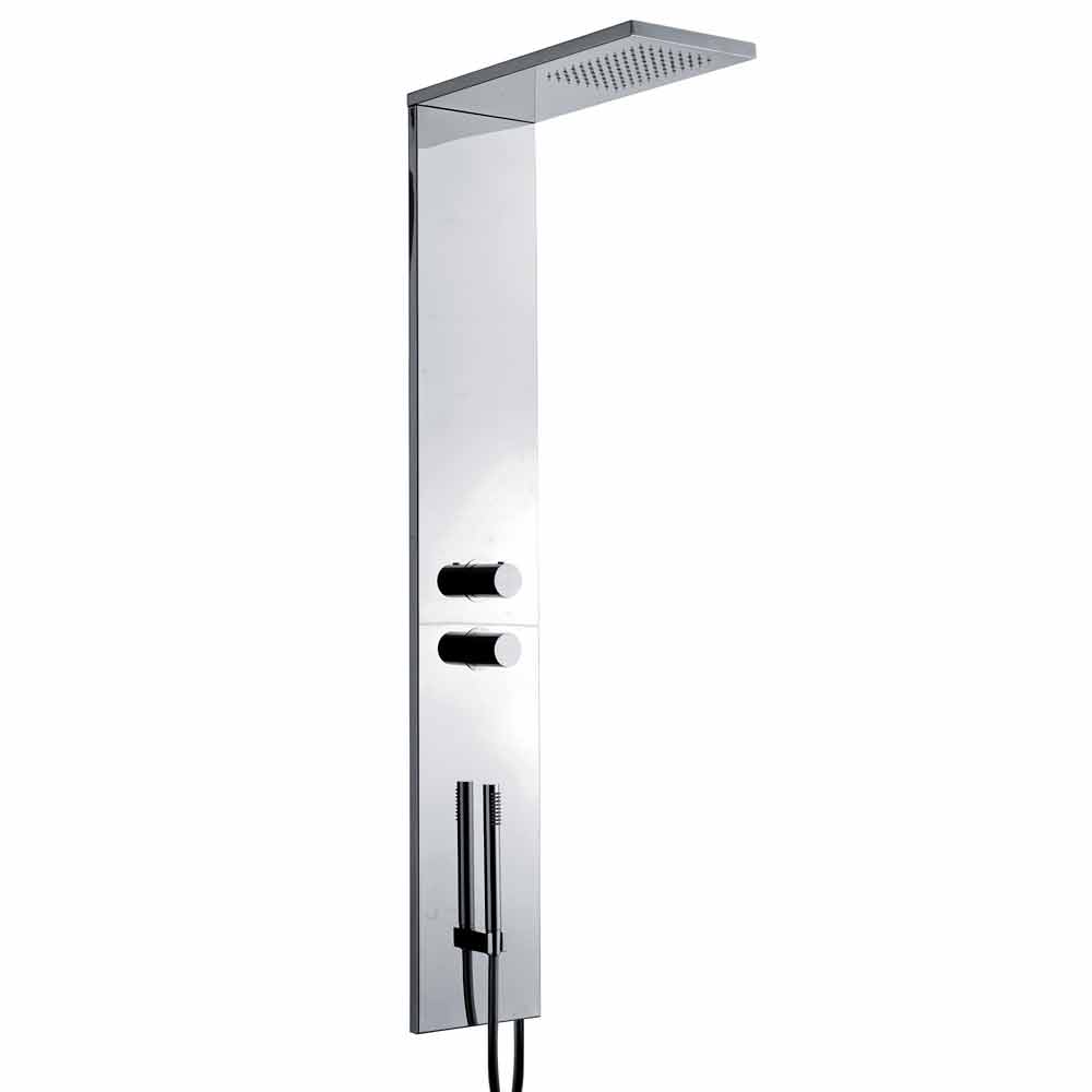 Columna de ducha termostática de pared moderna y elegante fabricada íntegramente en Italia en acero inoxidable con acabado cromado. El encuentro entre funcionalidad y diseño da vida a un maravilloso mueble, ideal para completar y enriquecer cualquier baño con elementos contemporáneos con originalidad. Sus líneas geométricas con características esenciales crean la columna de ducha perfecta para quienes buscan un gusto sofisticado y extremadamente innovador capaz de revolucionar el mueble aportando un toque de personalidad .