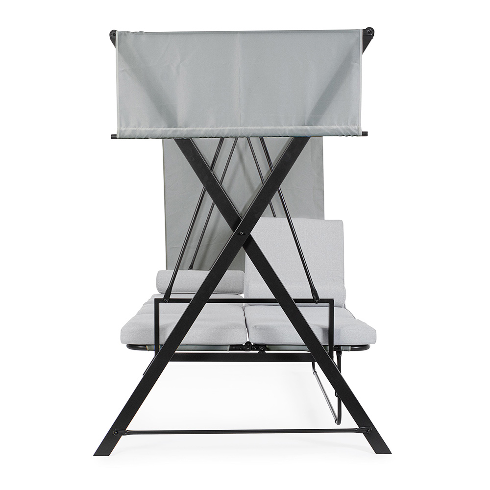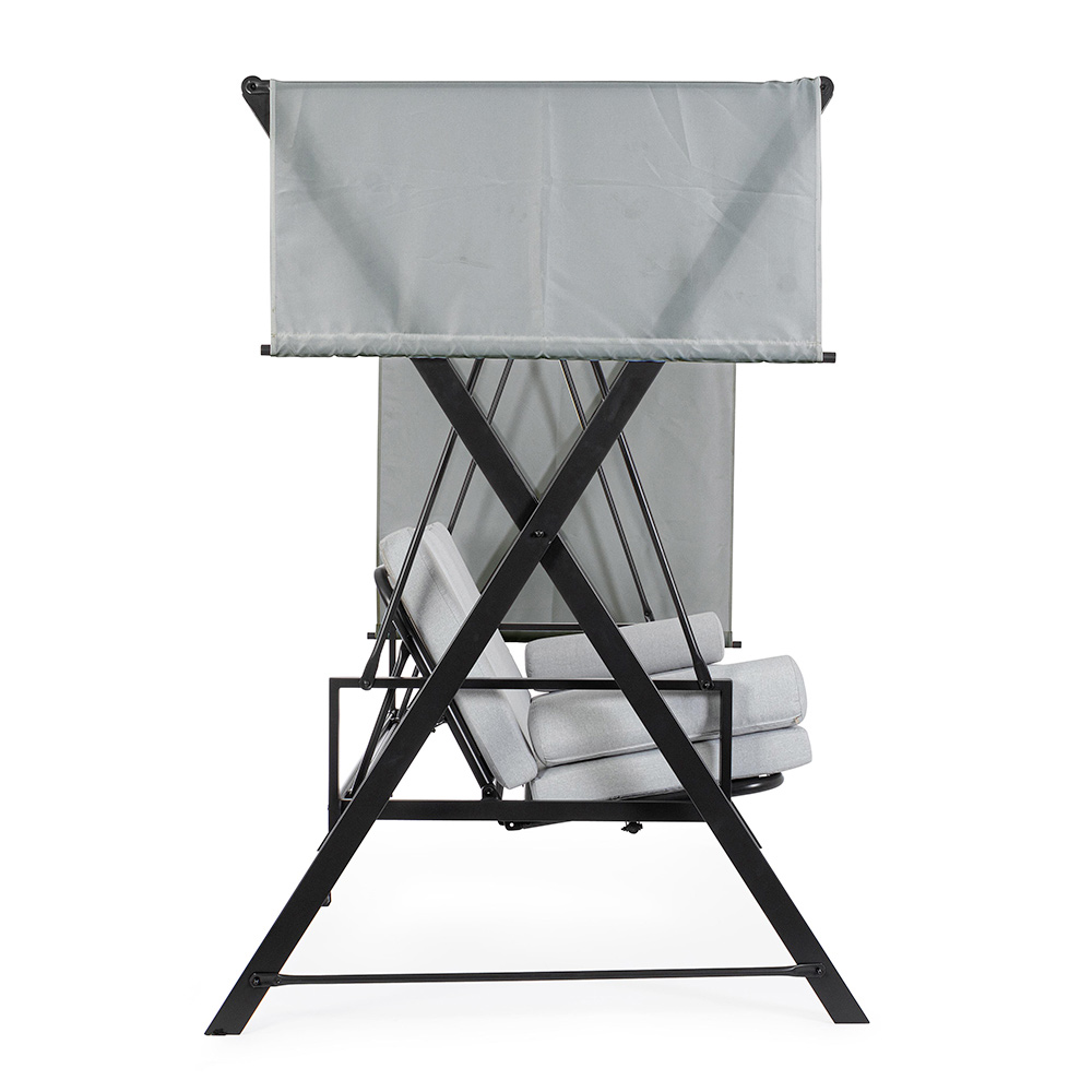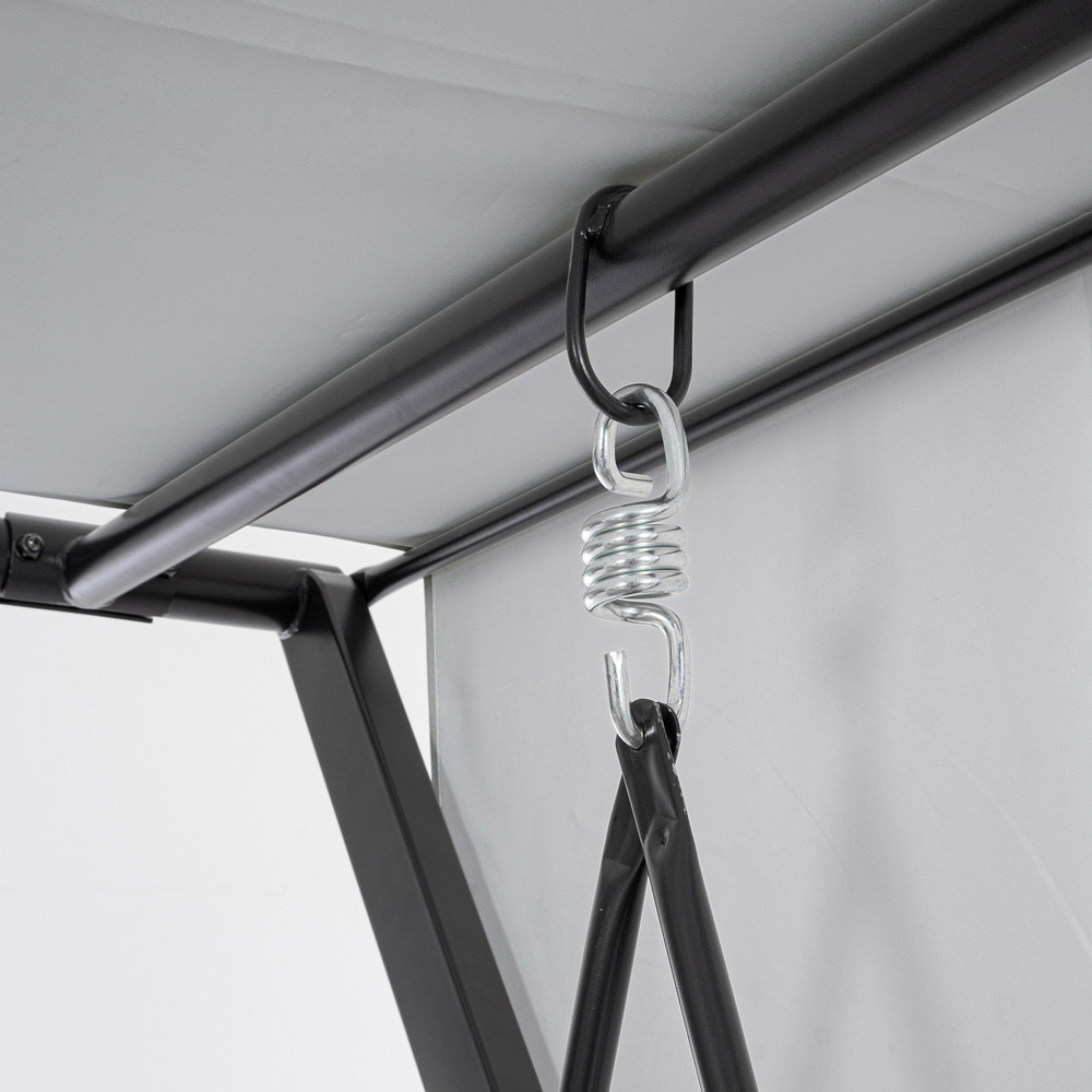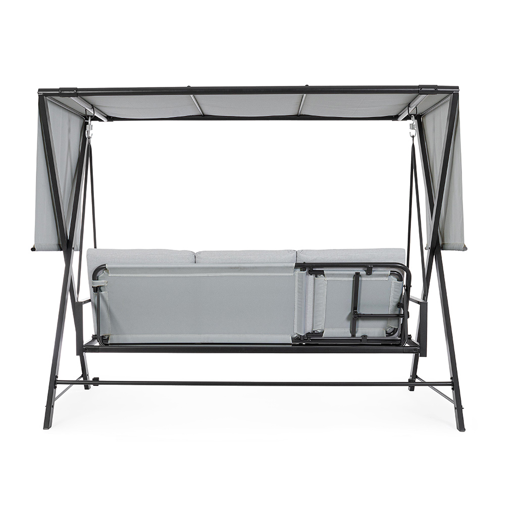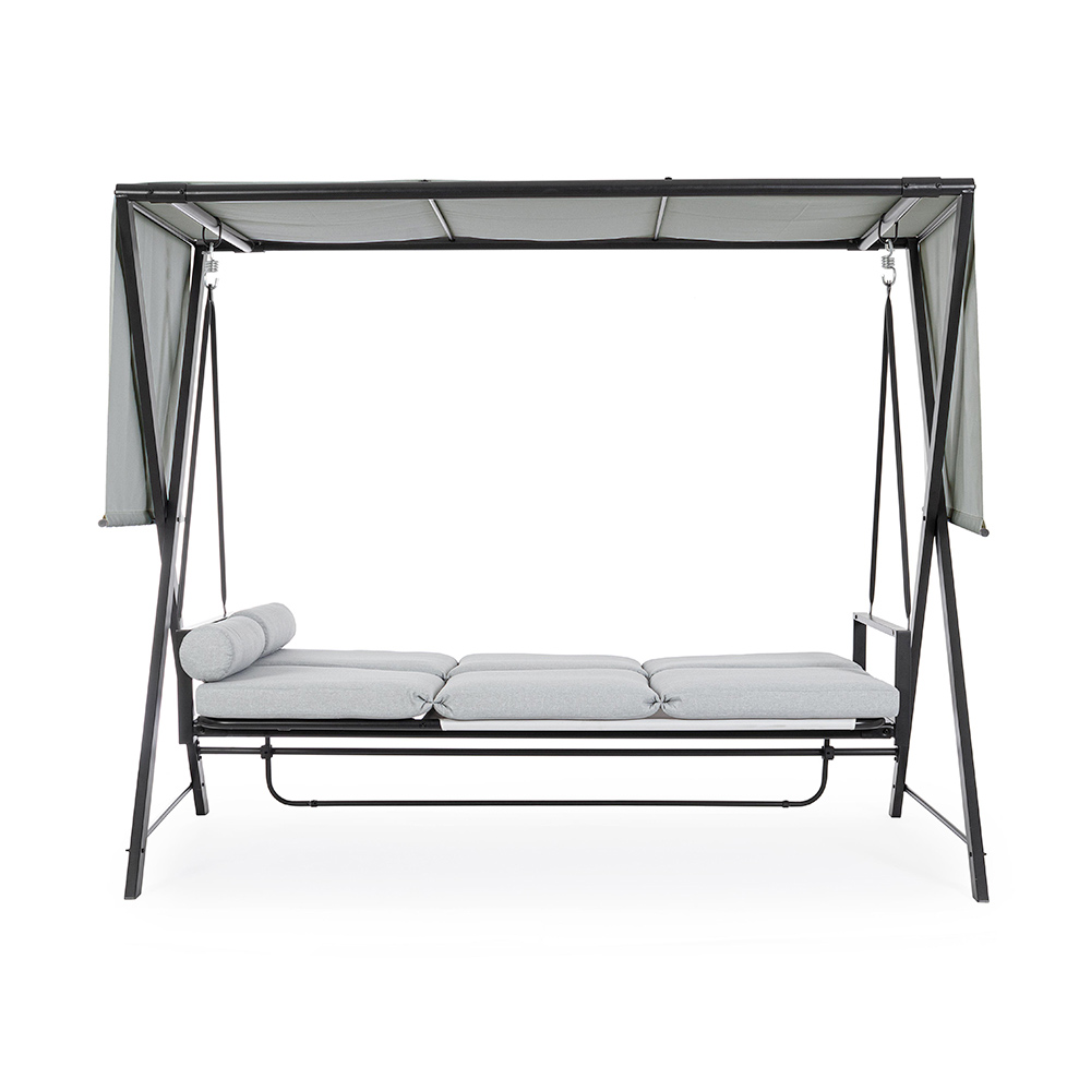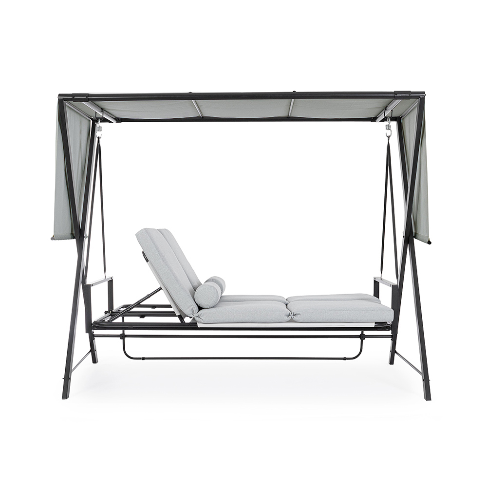El toldo ajustable ofrece protección contra los rayos del sol, permitiéndote ajustar la sombra a tu gusto, mientras que las cortinas laterales añaden un toque de privacidad y protección adicional . Este columpio es más que un simple asiento; es un refugio personal en su jardín , una invitación a descansar del frenesí diario y redescubrir el placer del tiempo al aire libre. Perfecto para quienes buscan un rincón de tranquilidad y estilo , este columpio es ideal para elevar la experiencia de relajación en tu espacio al aire libre.