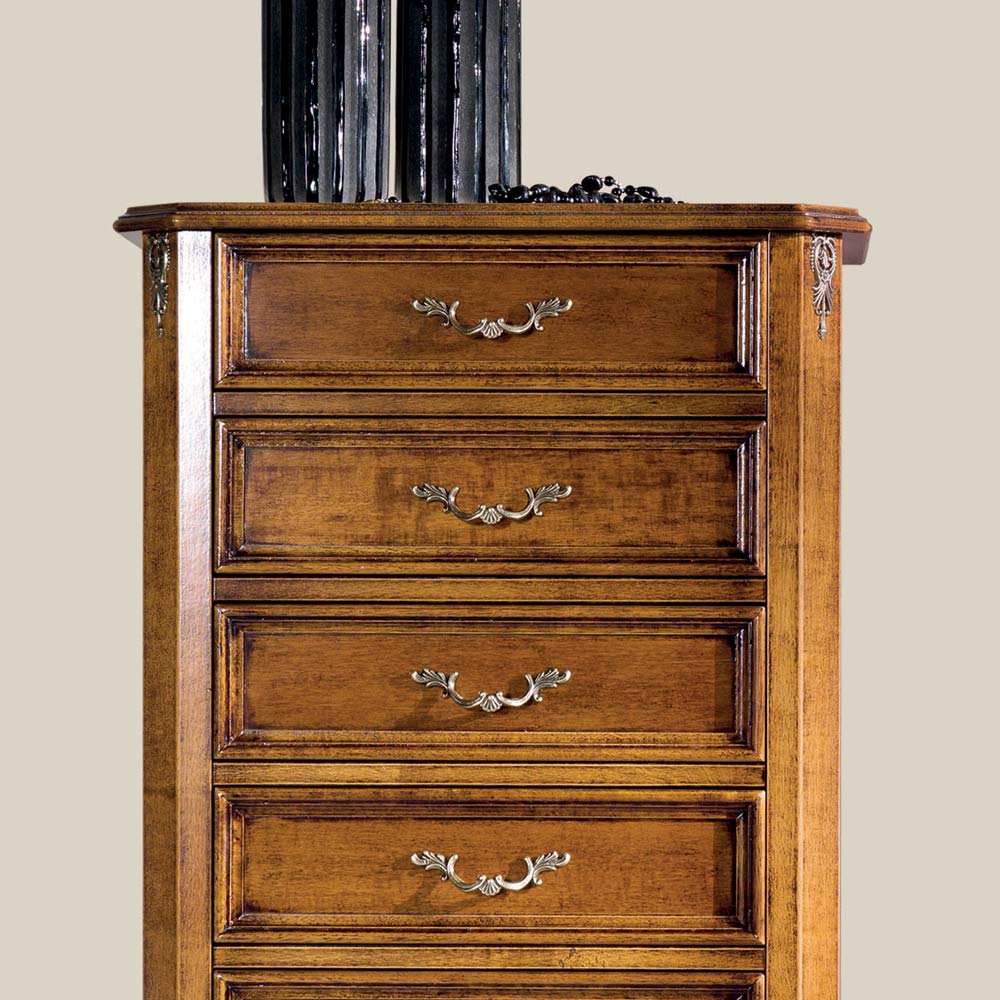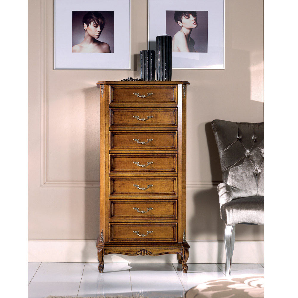Cómoda de estilo clásico de 7 o 5 cajones en madera Made in Italy.