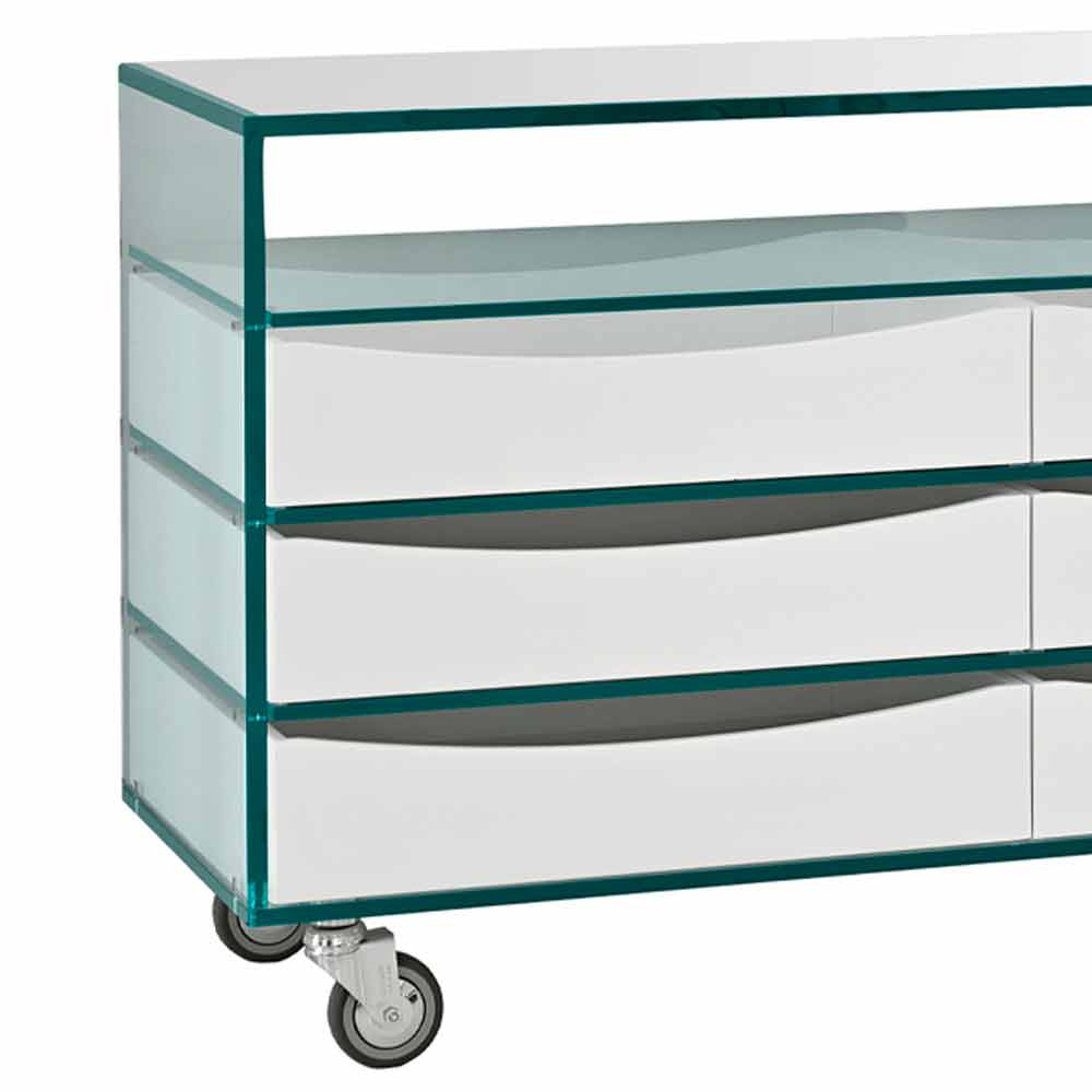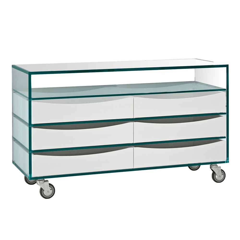 Comò in Vetro Extrachiaro con Sei Cassetti in Legno Bianco Made in Italy – Ganzo