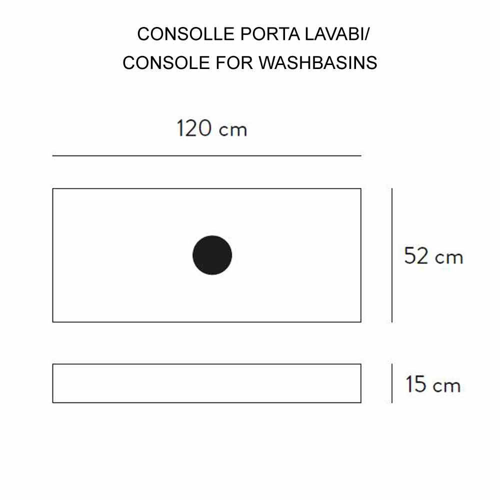 La composición incluye:- consola de lavabo suspendida: An 120 x Pr 52 x Al 15 cm