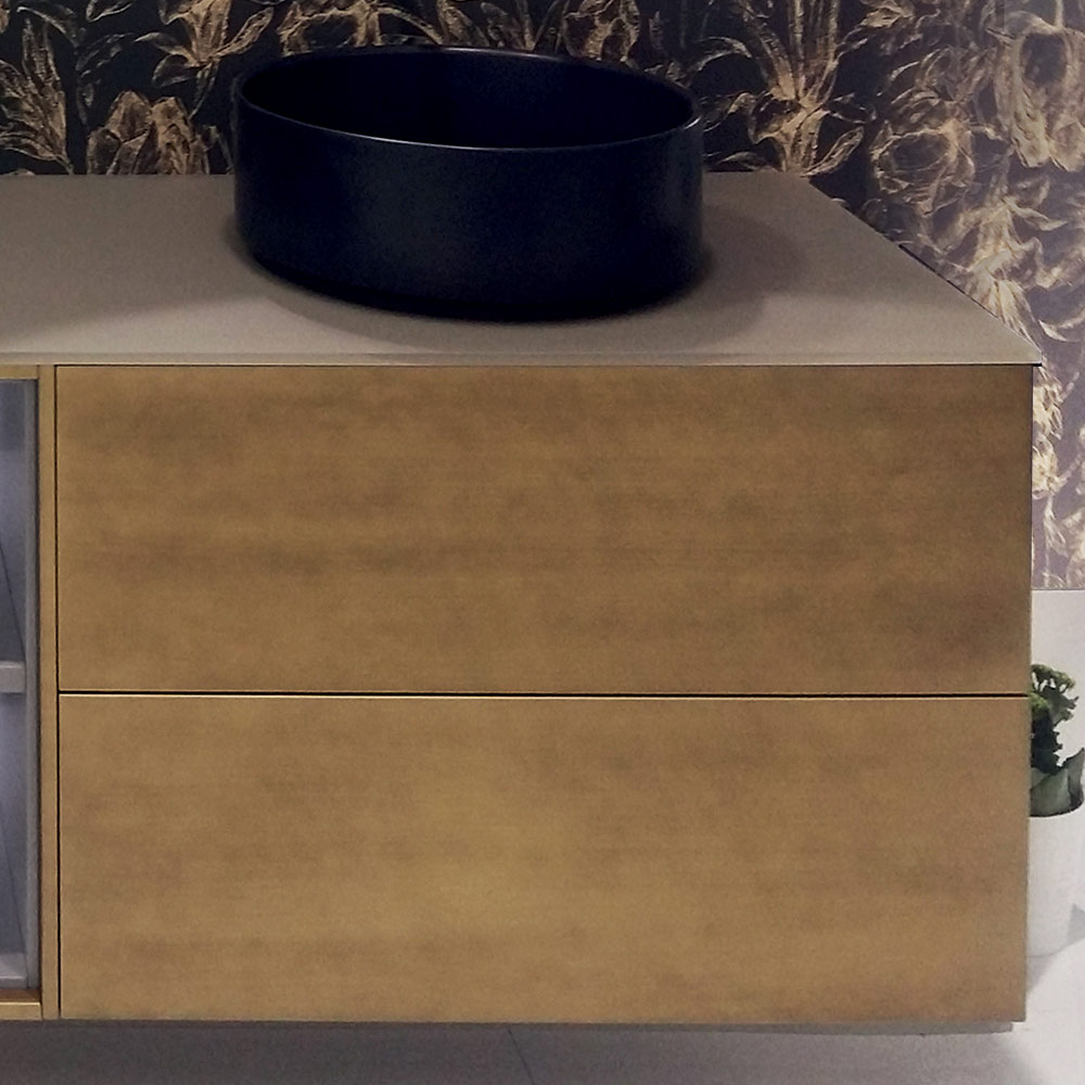 doble sobre encimera en resina stonelight gris antracita. Estos descansan sobre una