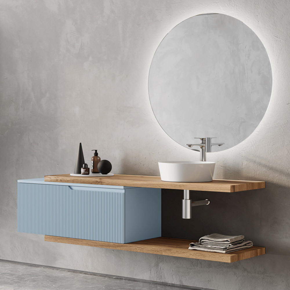 Composición de baño en MDF azul Tiffany y roble acanalado Made in Italy