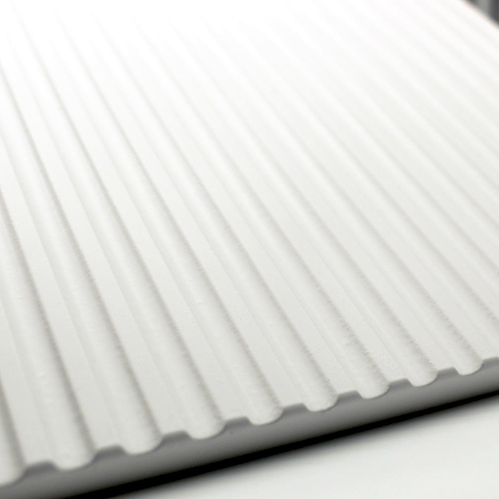 base con 2 cajones en MDF blanco acanalado con hueco para el sifón a la derecha,