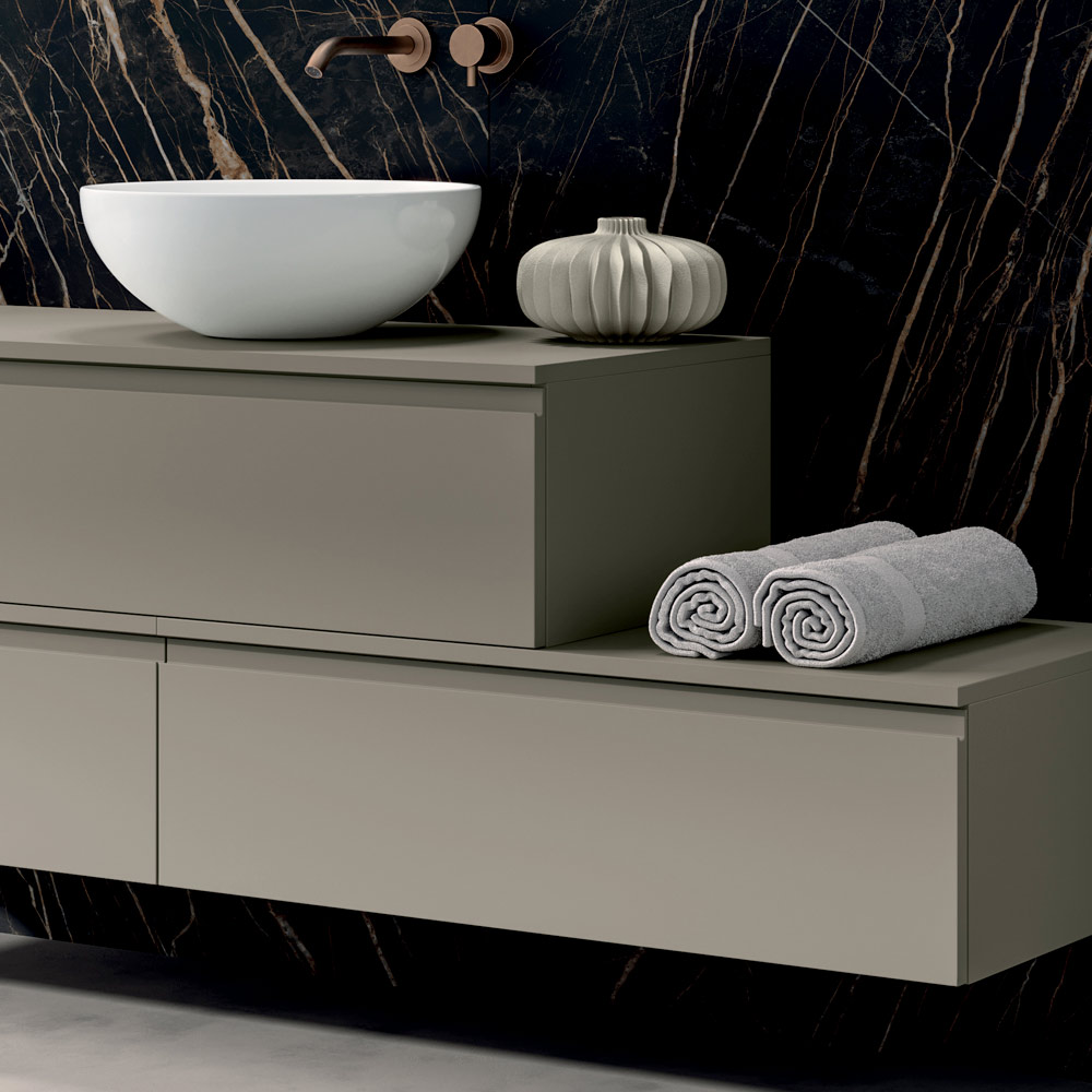 Una propuesta completa y espectacular, ideal para quienes desean un mueble de baño de diseño capaz de combinar estética refinada, confort cotidiano y soluciones funcionales de alto nivel.