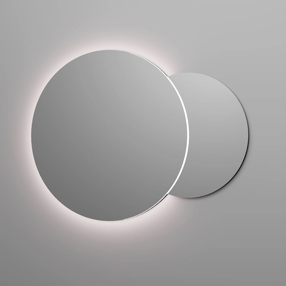 Los dos espejos retroiluminados amplifican la luminosidad del espacio, creando una atmósfera sofisticada y envolvente. La luz integrada define los volúmenes y contribuye a un espacio moderno y funcional.