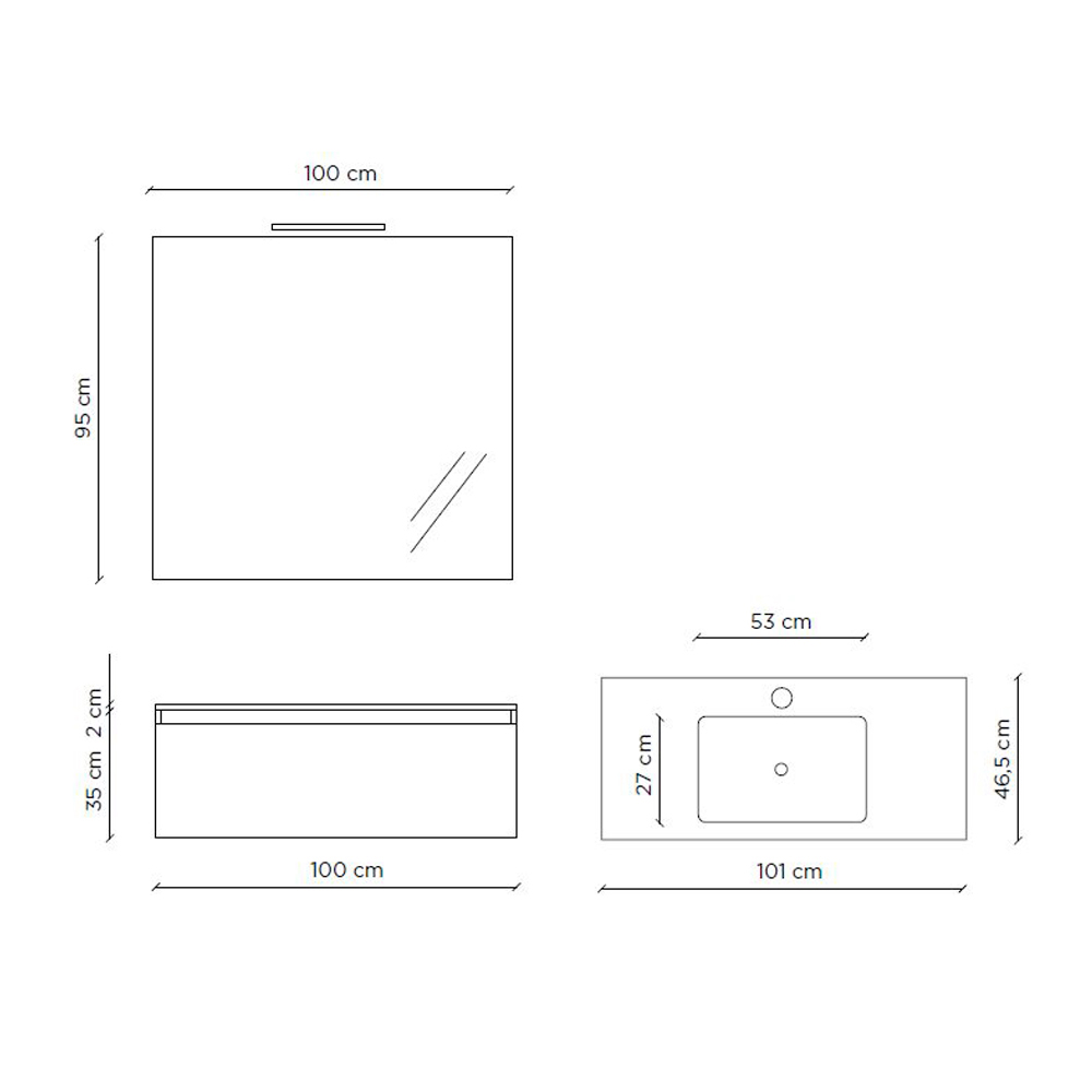 Base: Largo 100 cm x Fondo 46,5 cm x Alto 37 cm