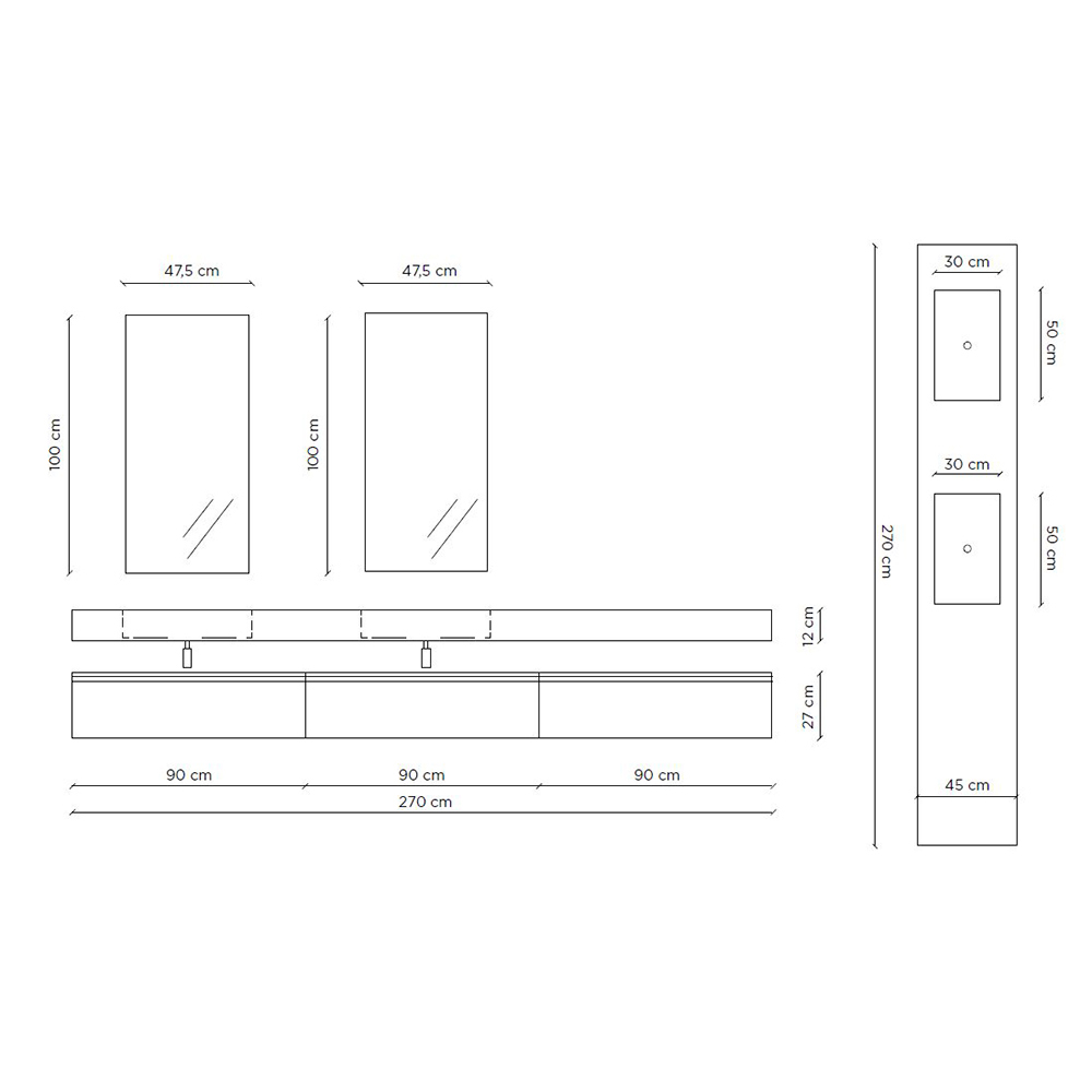 Base x3: Largo 270 cm x Alto 27 cm x Fondo 45 cm