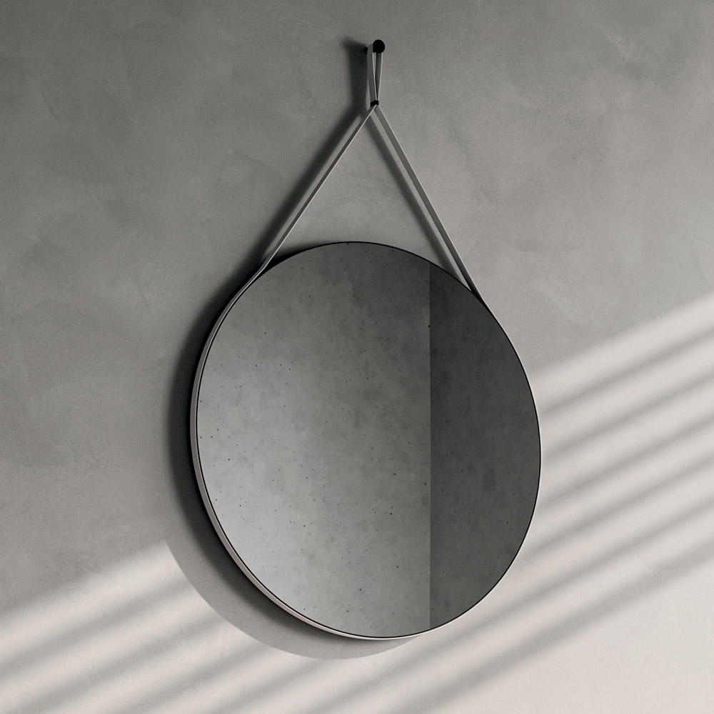 El espejo redondo completa el conjunto con un toque decorativo discreto y refinado, ayudando a ampliar visualmente el espacio y crear un ambiente luminoso y acogedor.