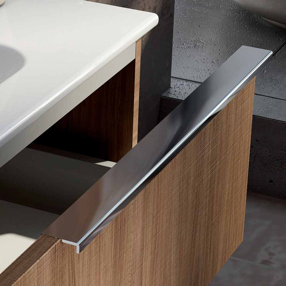 - base del fregadero de madera ecológica de roble aserrada con tirador en acabado cromado brillante; L90xH48xP46 cm;