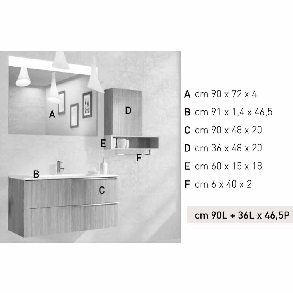 - una barra de toalla cromada debajo del almacenamiento; L6xH40xP2 cm.