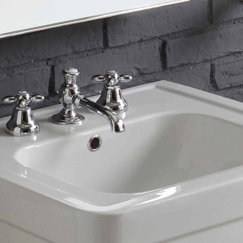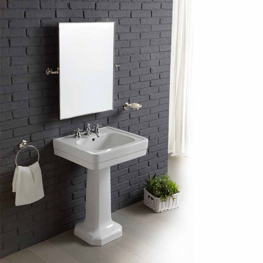 Composición de baño con lavabo sobre columna en cerámica blanca Ania