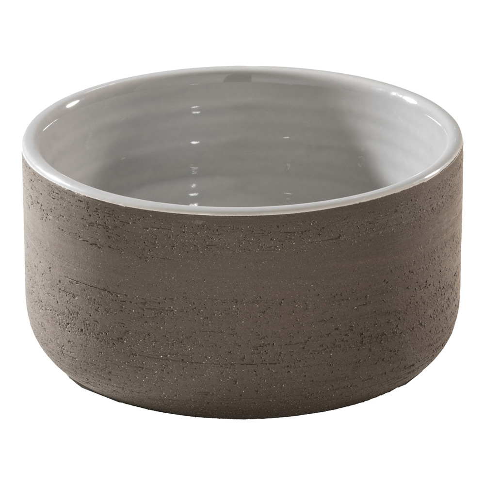 barro refractario y tierras oscuras con interior esmaltado gris completamente