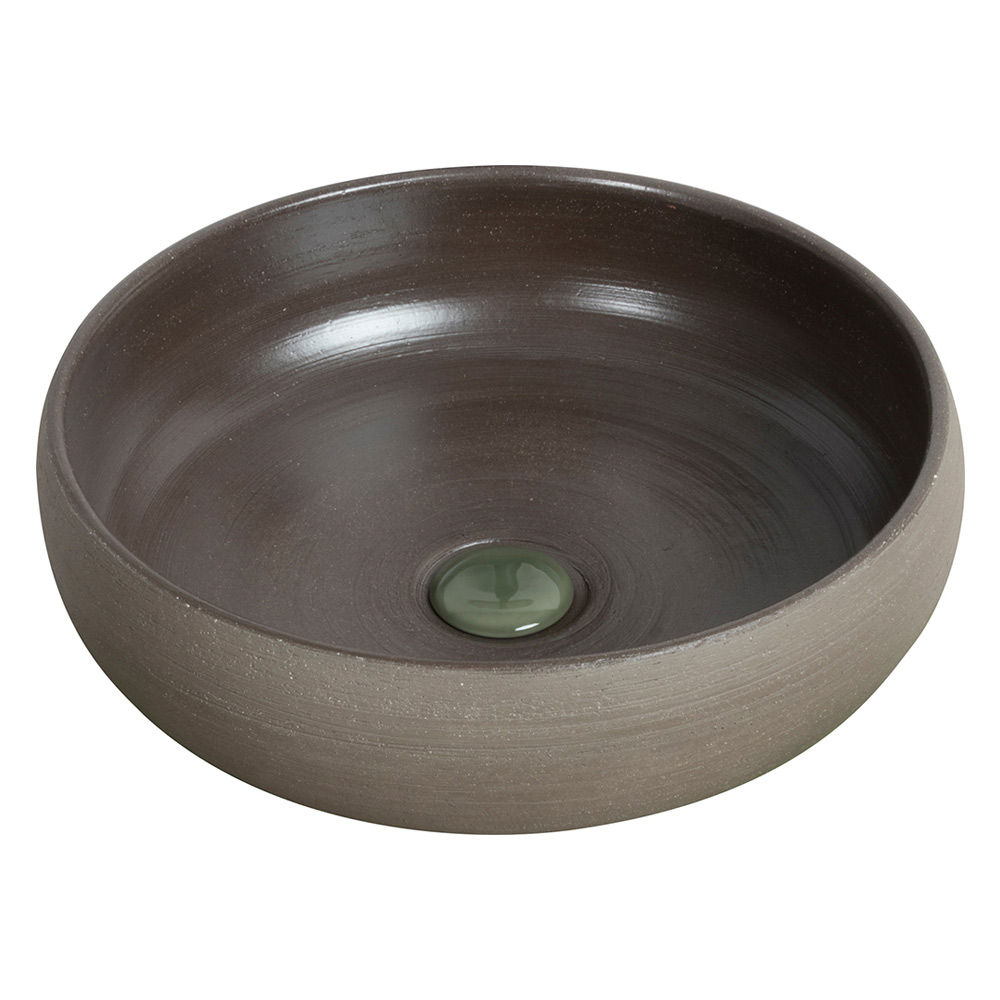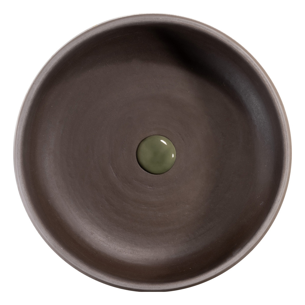 arcilla refractaria y tierra oscura con interior esmaltado en verde completamente