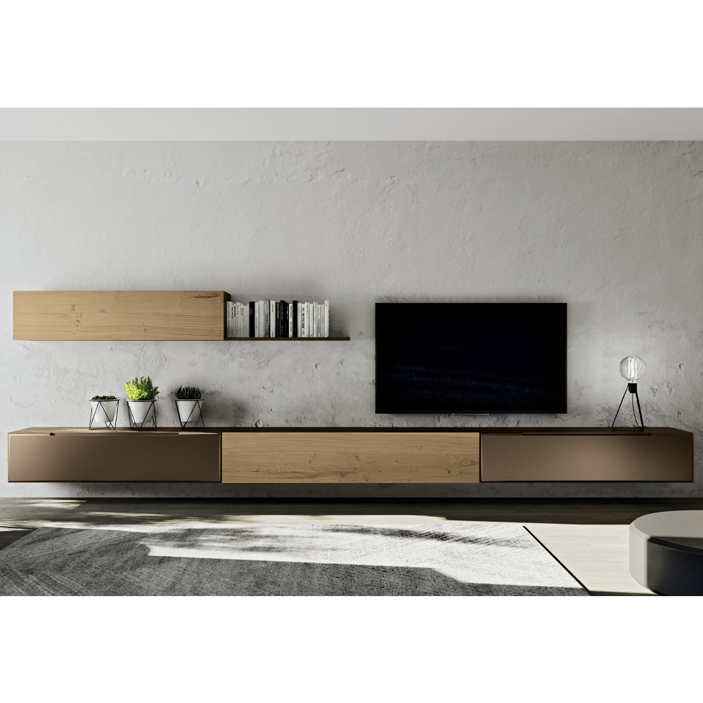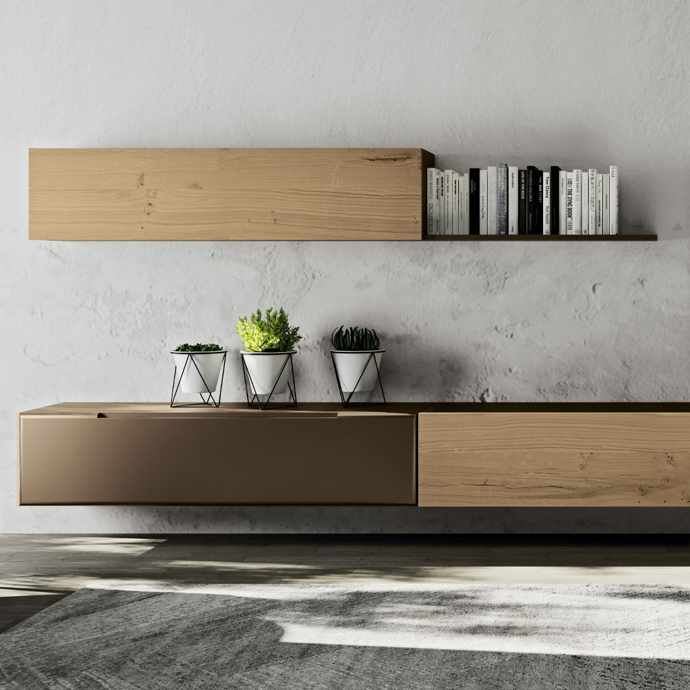 Composición de pared moderna en MDF y madera Made in Italy