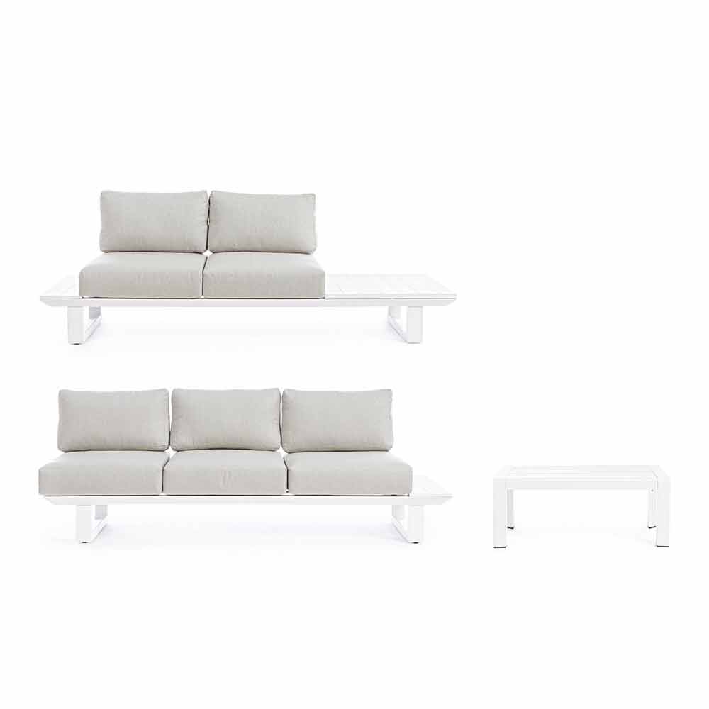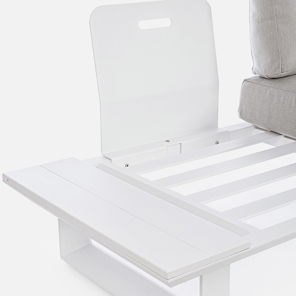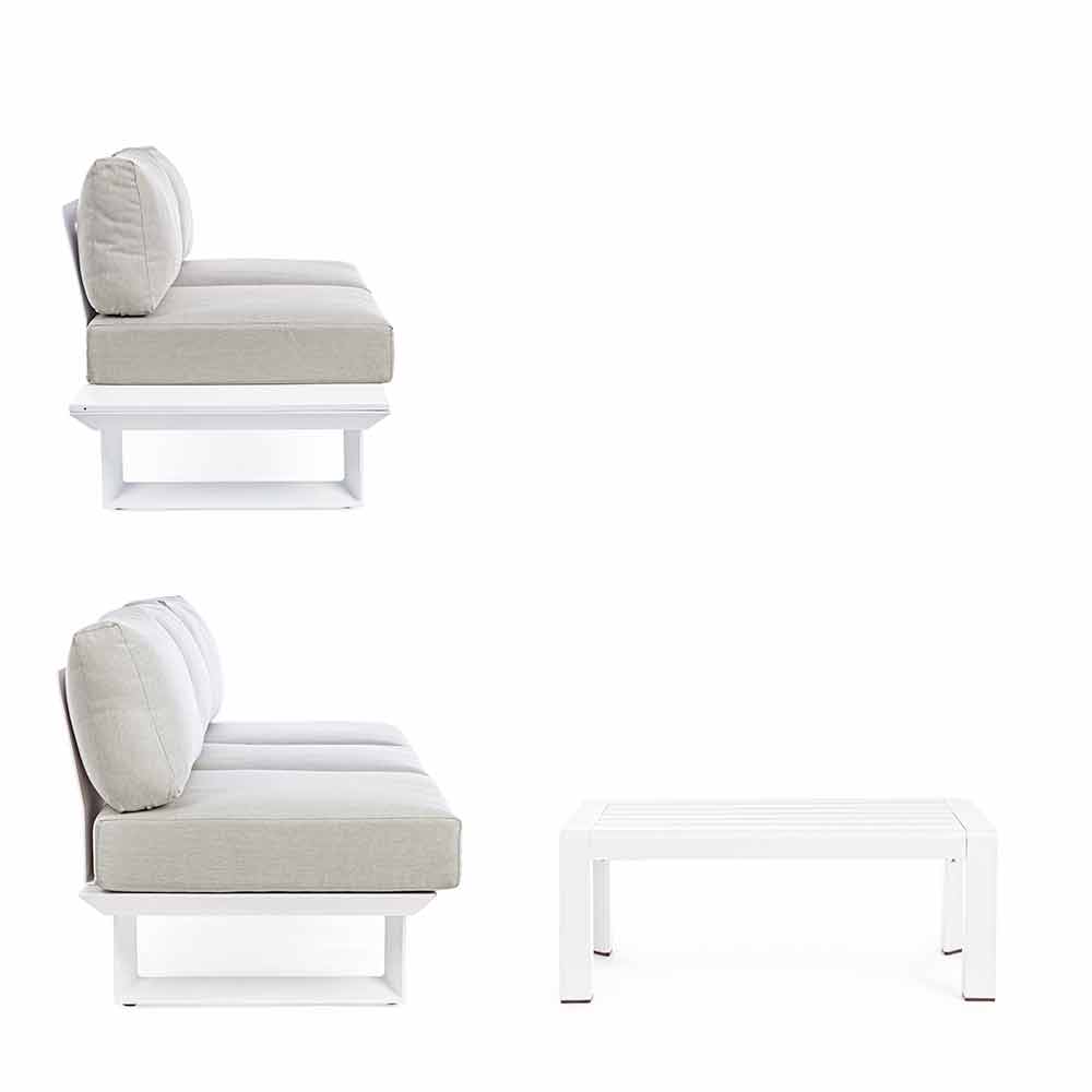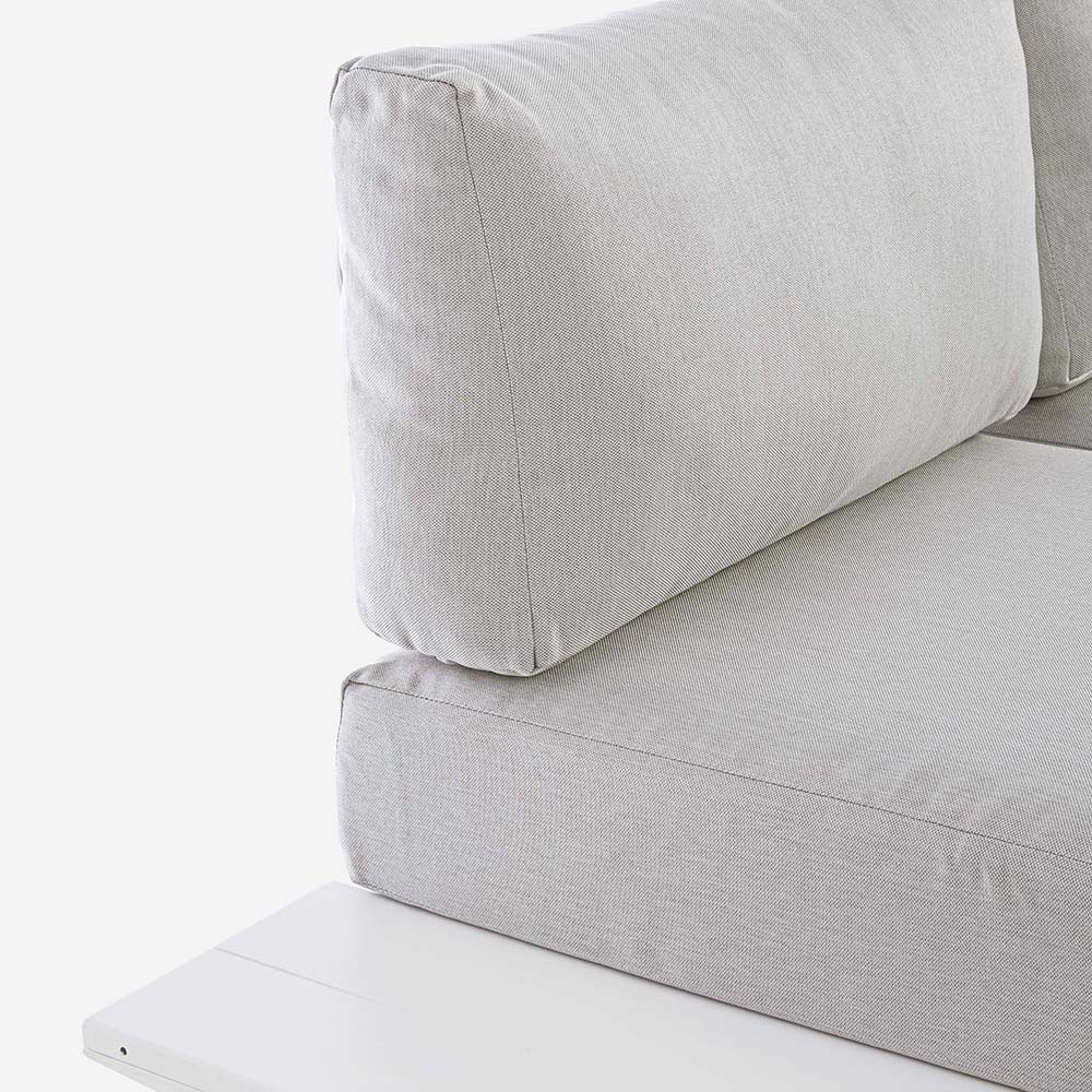 Estructura de aluminio pintado en polvo (poliéster). Cojines desenfundables con tejido Olefina (100% polipropileno).