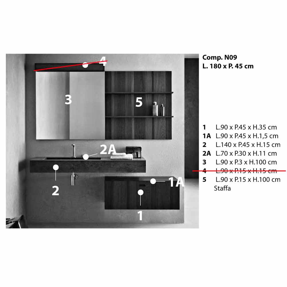 Una composición inspirada en la naturaleza, eco-sensible , diseñada con respeto por el medio ambiente: la resina de cemento, así como la madera y la piedra, son de hecho trabajadas con un proceso manual que realza sus imperfecciones, haciendo de cada baño una pieza única .
