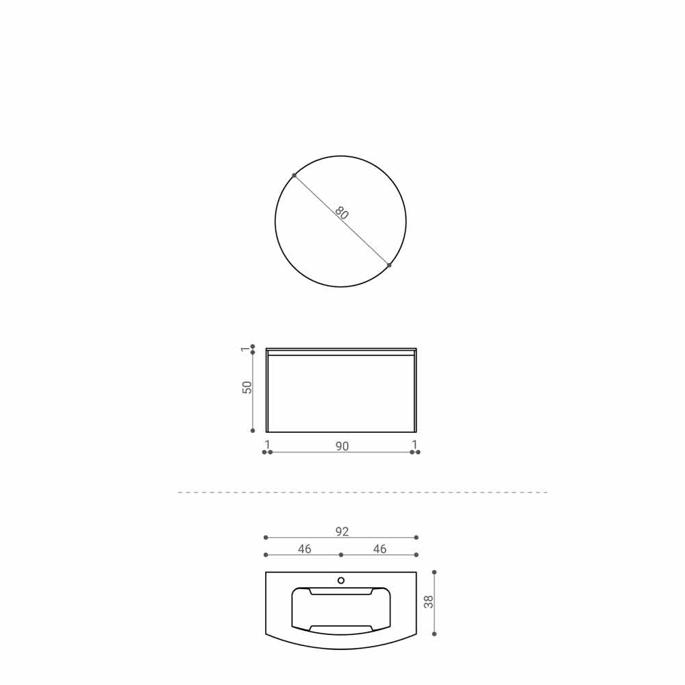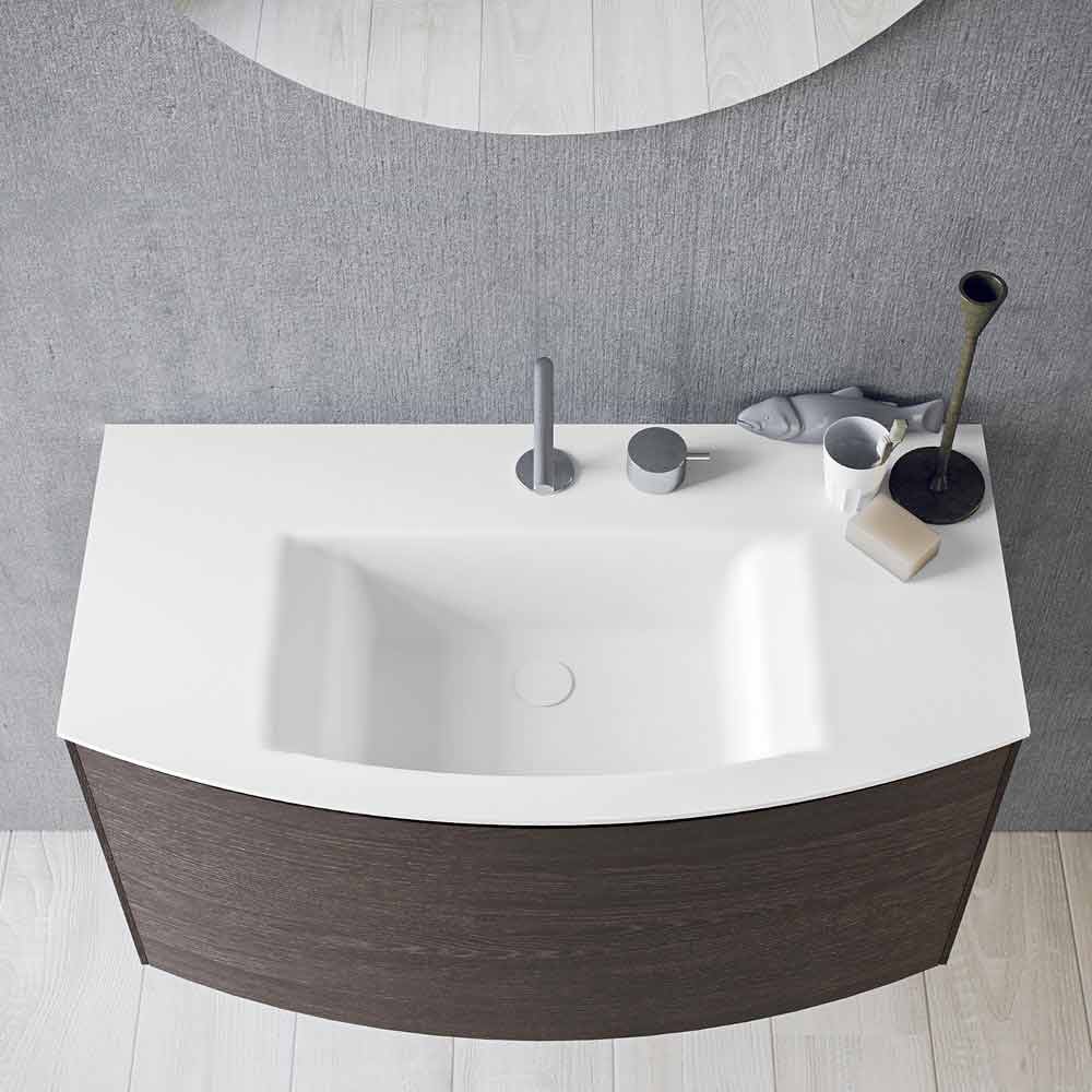 La peculiaridad de esta composición viene dada por el lavabo encastrado caracterizado por dos lados laterales que descienden suavemente hacia el lavabo.