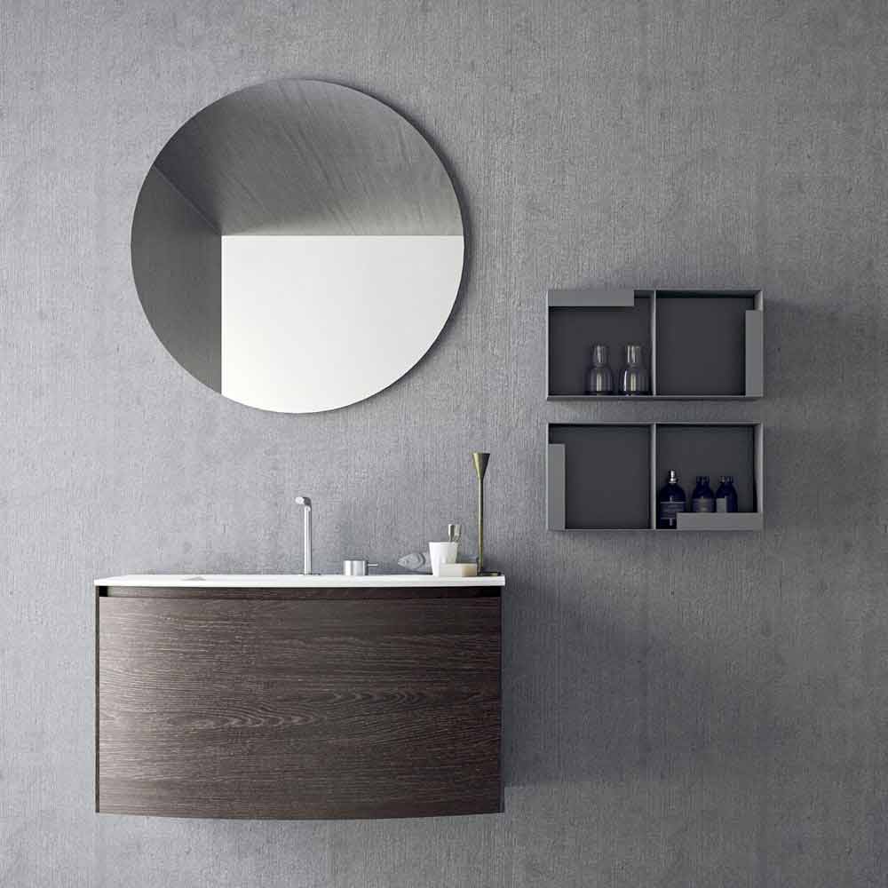 Composición de baño moderna, suspendida y de diseño minimalista con lavabo integrado, made in Italy.
