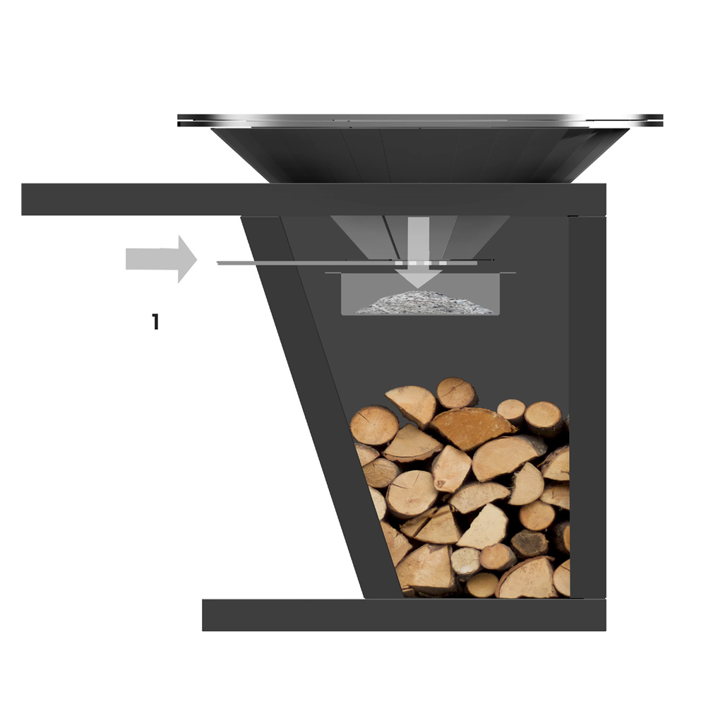 El sistema de apertura también ofrece la ventaja de poder descargar cenizas fácilmente desde abajo.