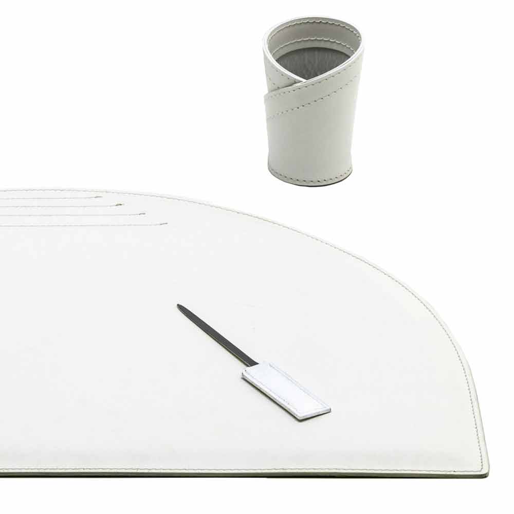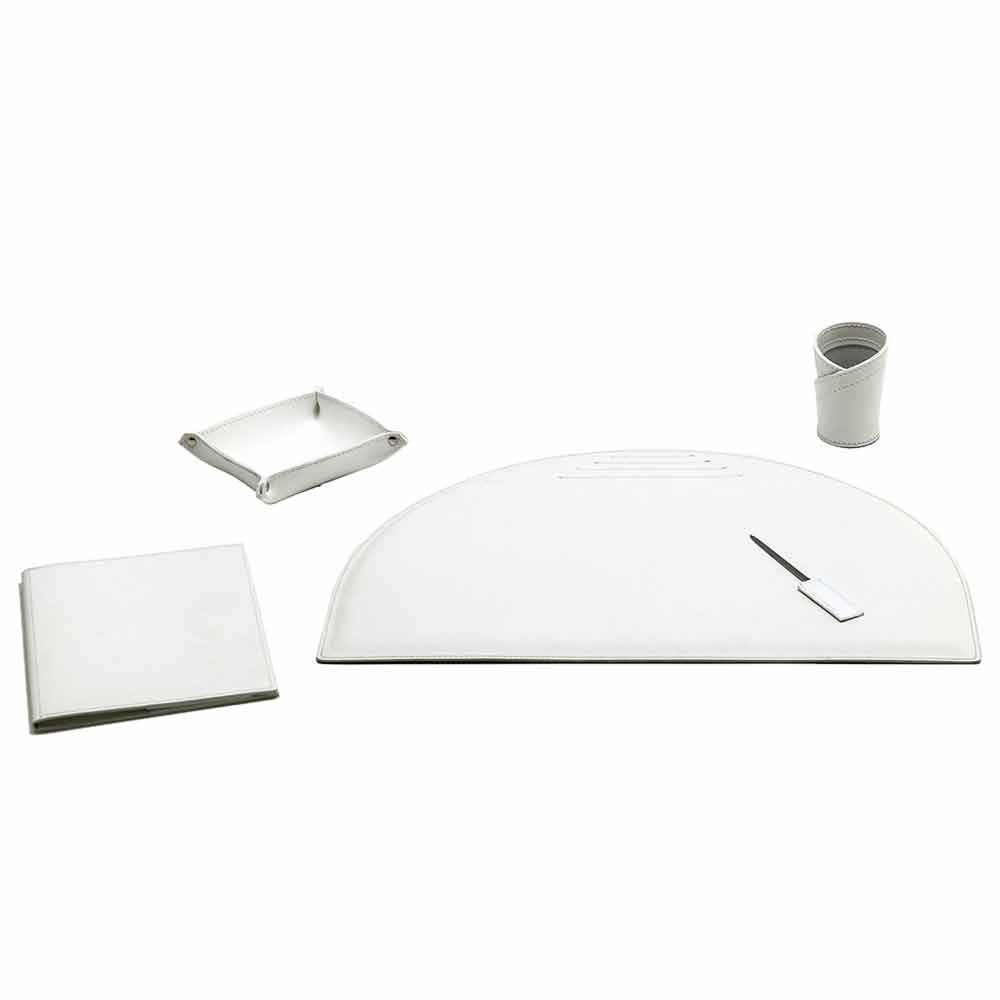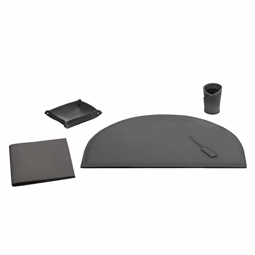 Accesorios de escritorio en cuero regenerado, diseño moderno, 5 piezas, Made in Italy Medea