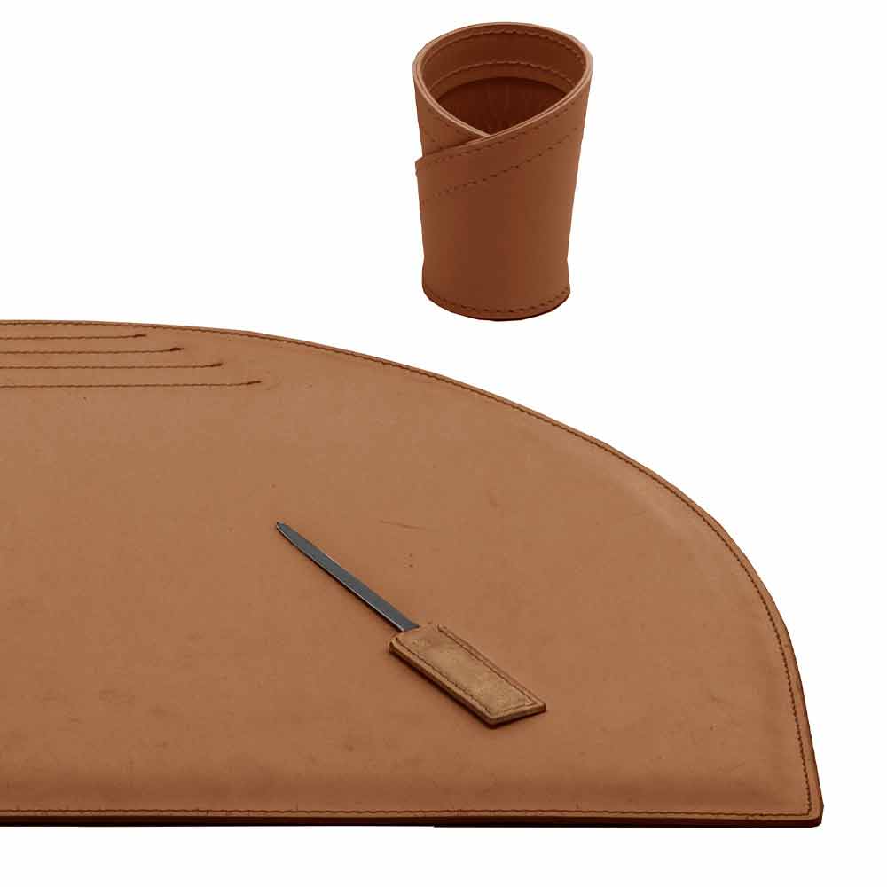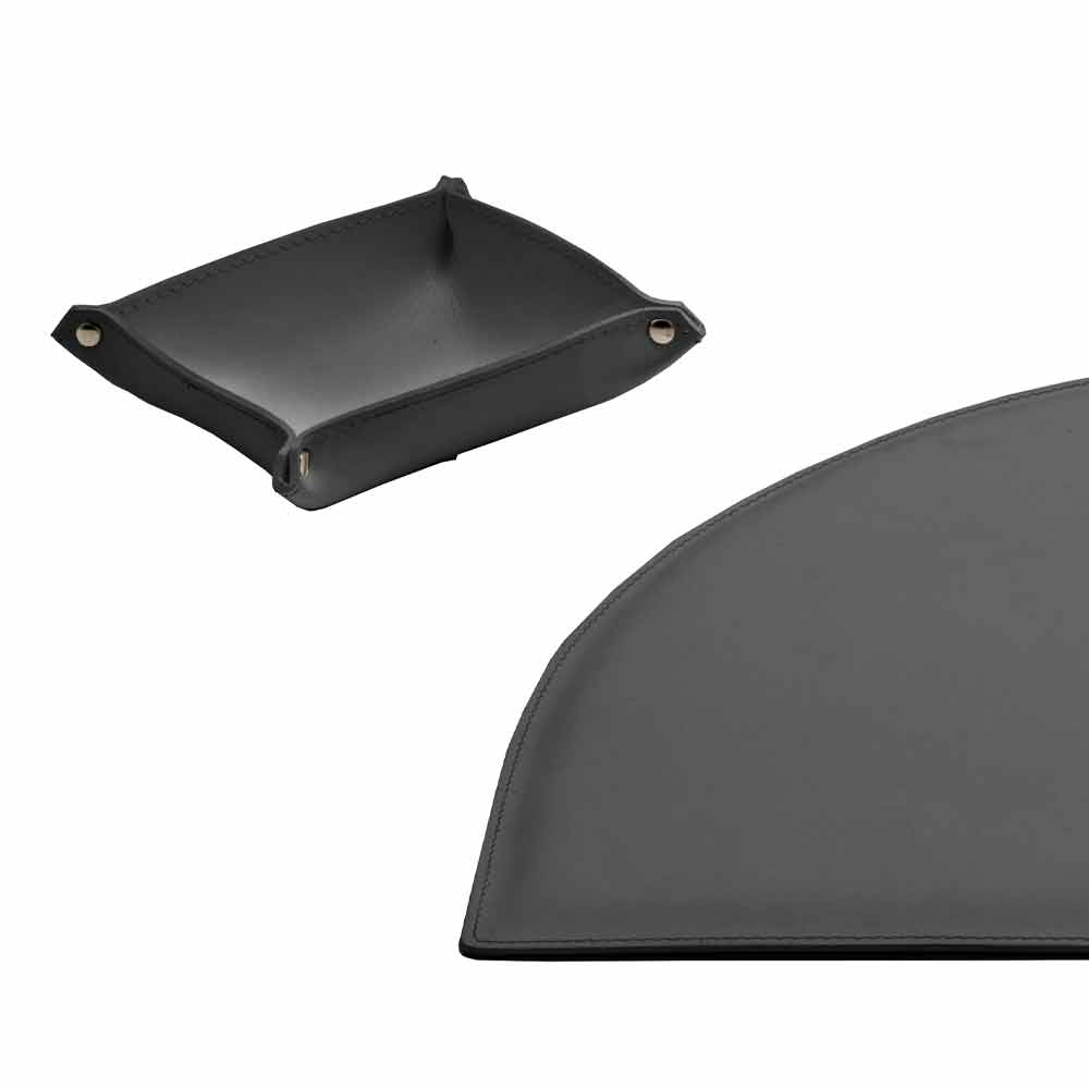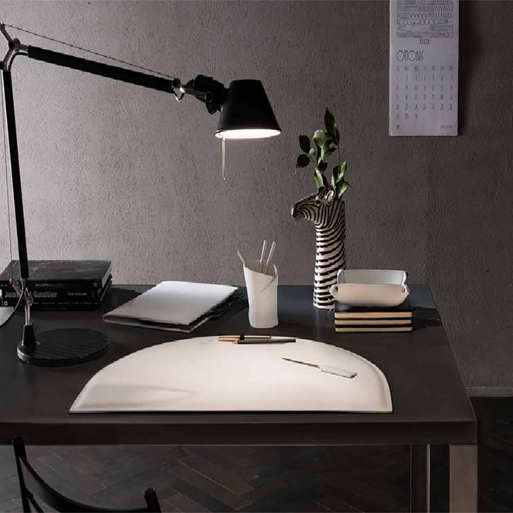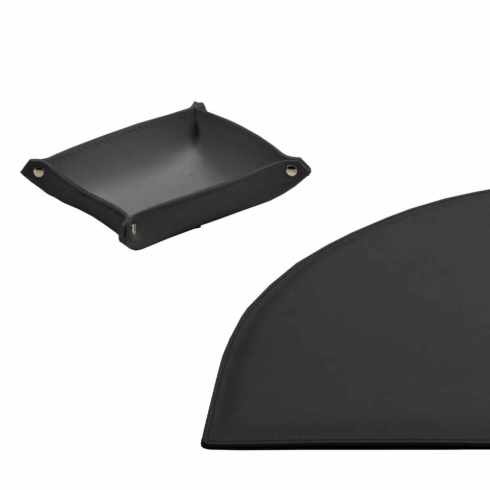 Accesorios de escritorio en cuero regenerado, diseño moderno, 5 piezas, Made in Italy Medea