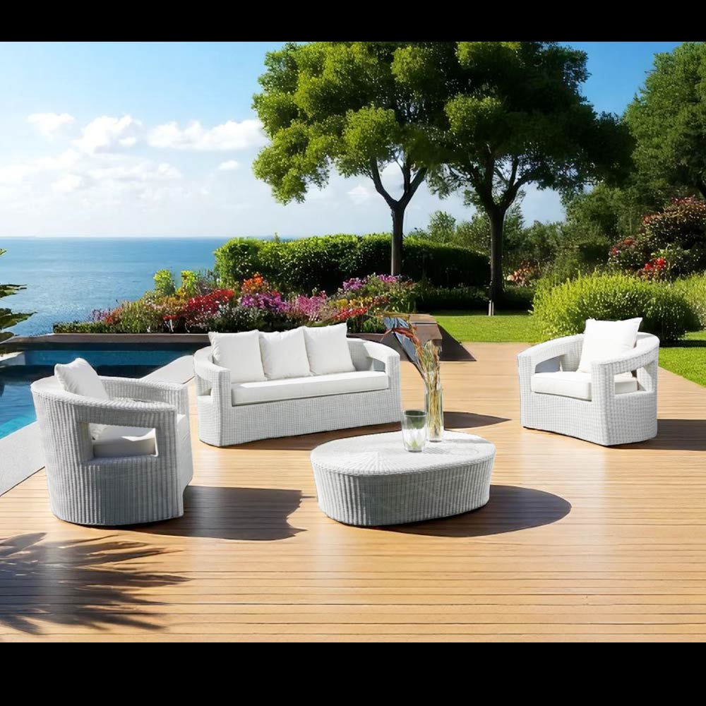 Conjunto de exterior de ratán sintético REHAU y cojines blancos - Charmix