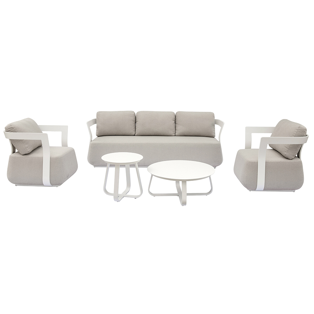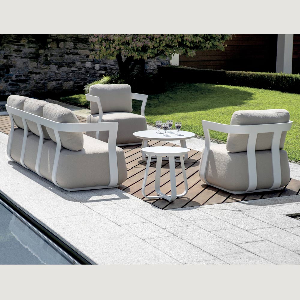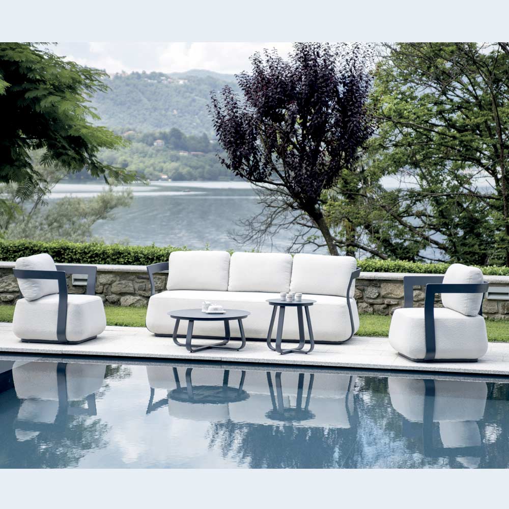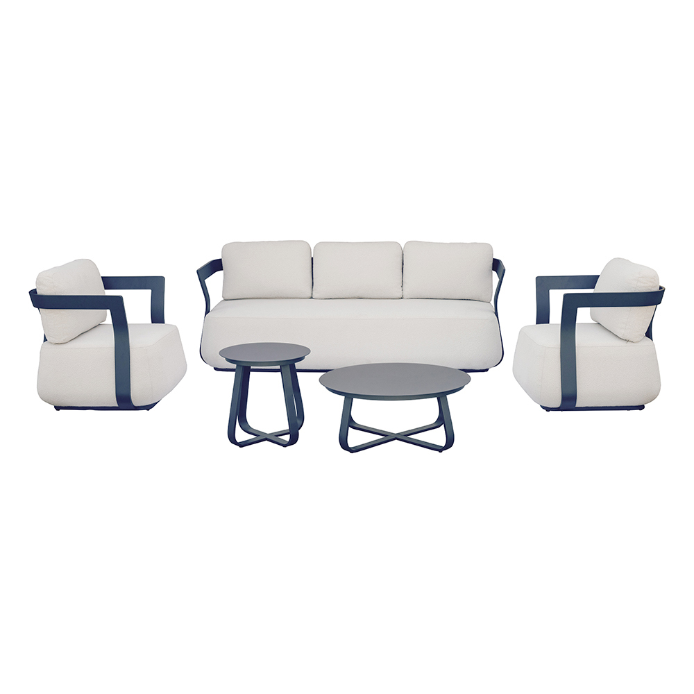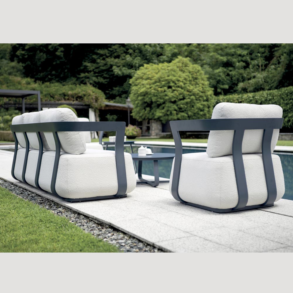 La estructura de aluminio garantiza ligereza, solidez y durabilidad, a la vez que conserva un aspecto elegante y contemporáneo. Los cojines altos, suaves y envolventes garantizan una comodidad superior y un soporte óptimo, invitándote a relajarte con total comodidad.