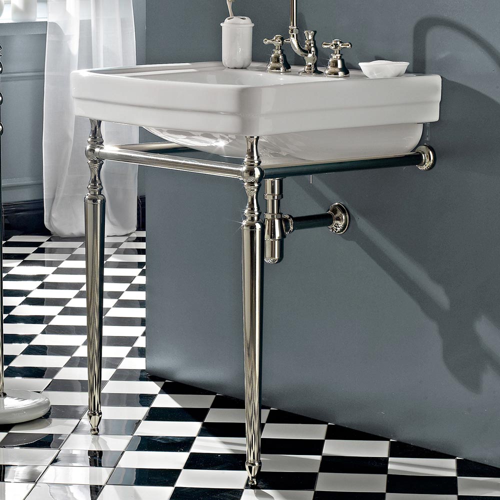 La combinación correcta de cerámica y metal hace que esta consola sea ideal para decorar cualquier estilo de baño.