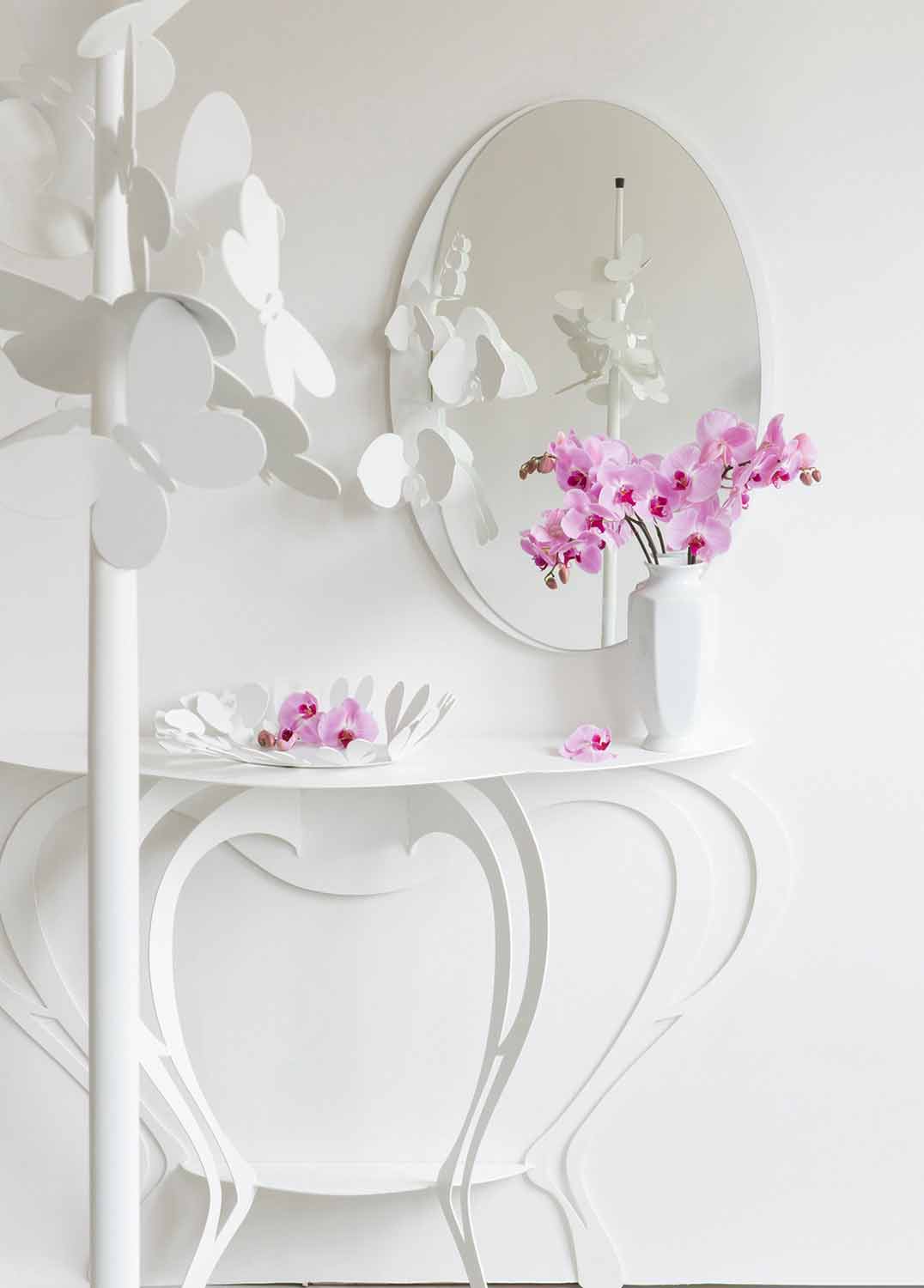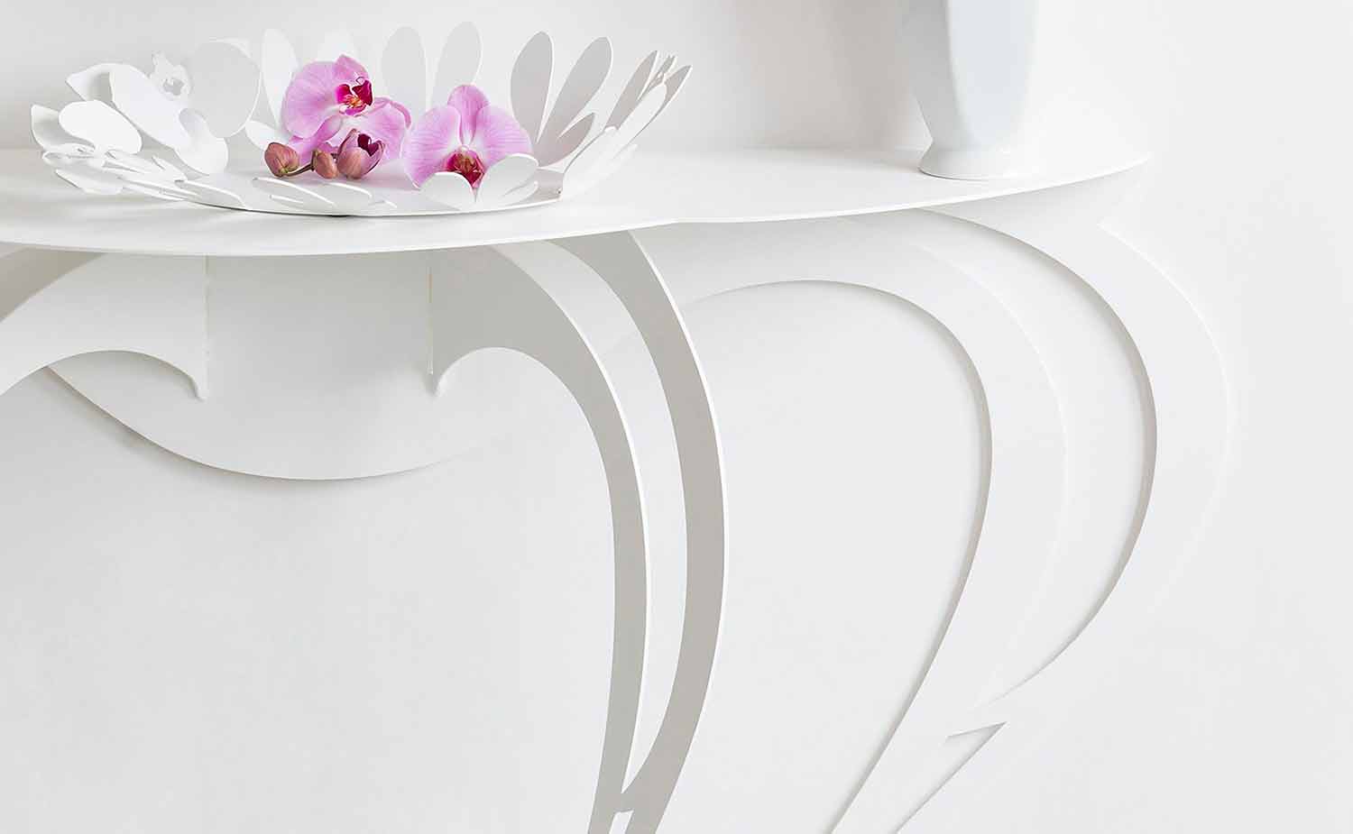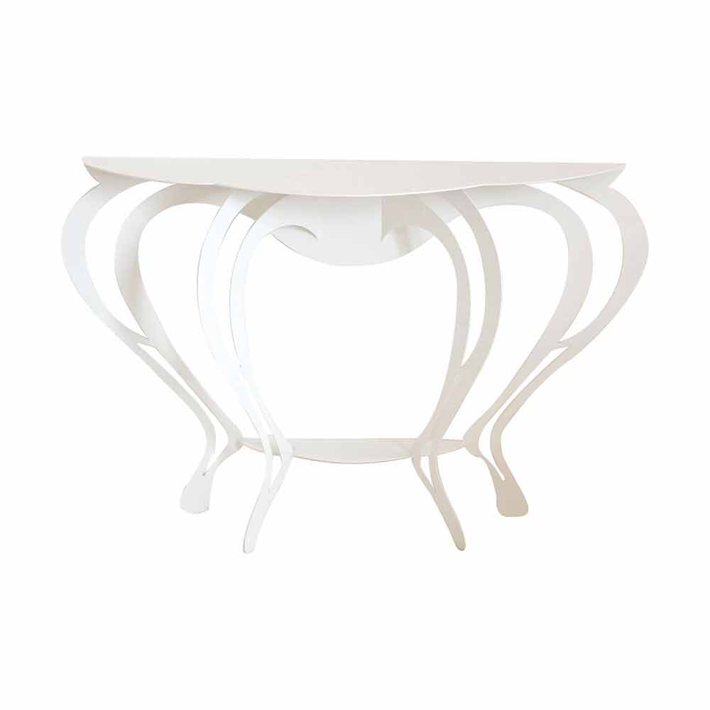 Barbata es una consola de sala de estar imperdible con líneas curvas y armoniosas que la hacen particularmente especial. Equipado con ranuras en la parte posterior para fijarlo a la pared y hecho a mano en Italia en hierro.