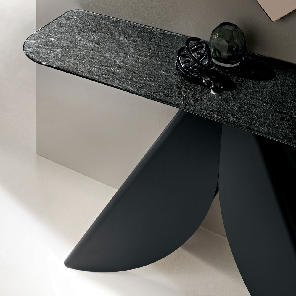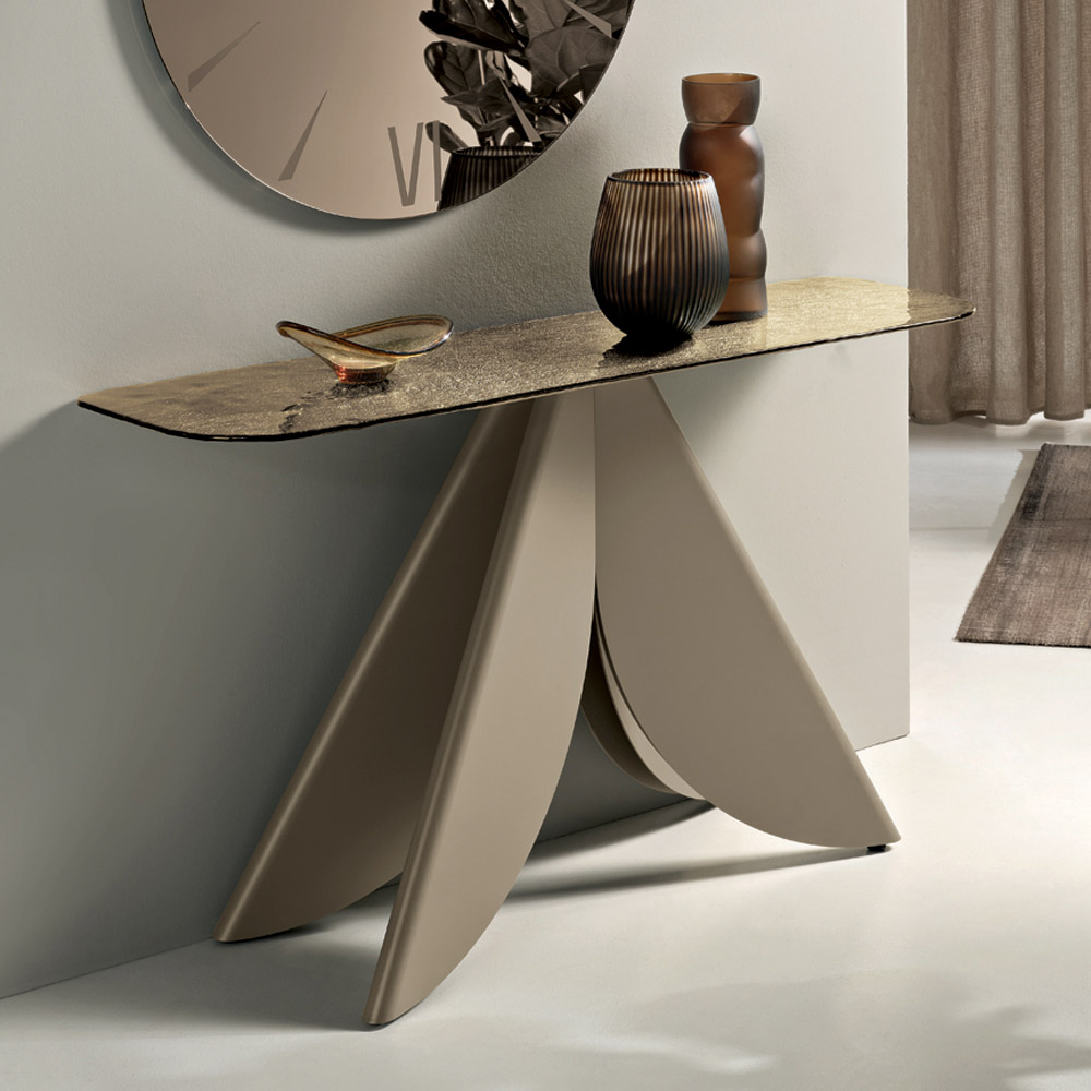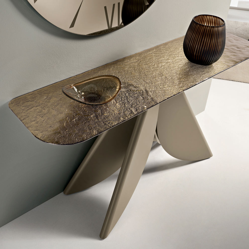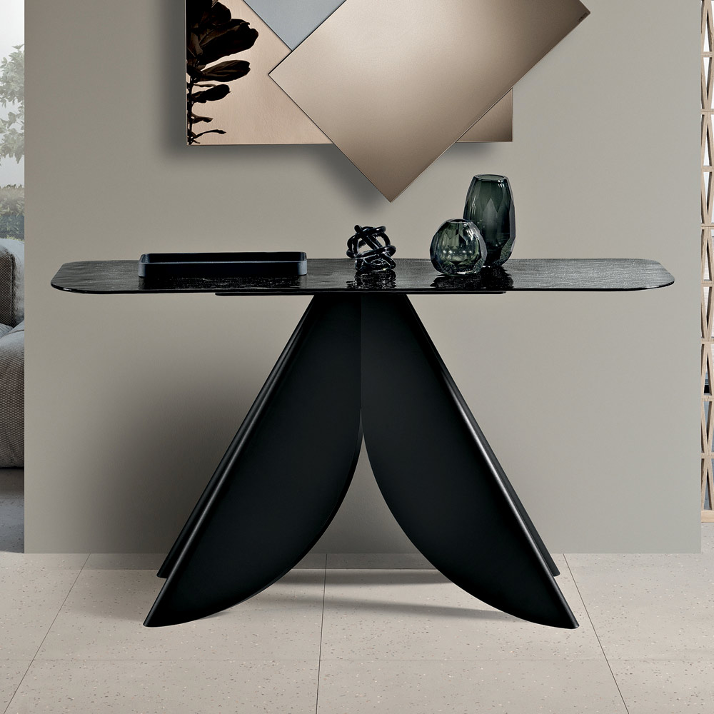 Una elegante consola de diseño, fabricada en Italia , ideal para amueblar con estilo la entrada , el salón o pasillos. Su diseño contemporáneo combina ligereza visual y una estética impactante, transformando un elemento funcional en un complemento verdaderamente decorativo.