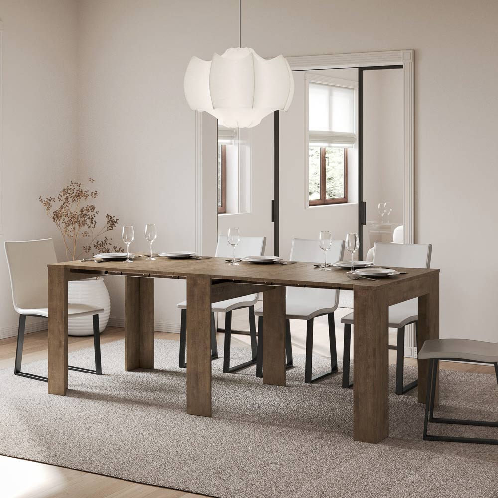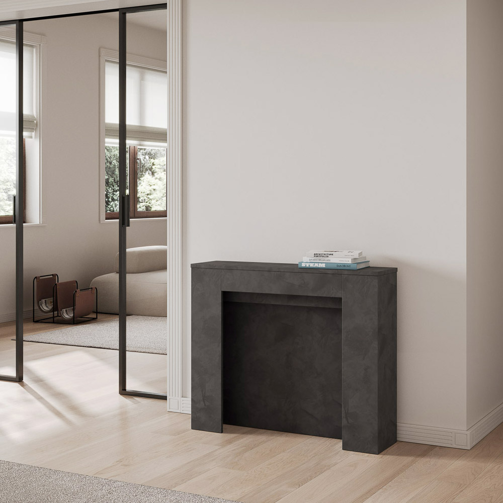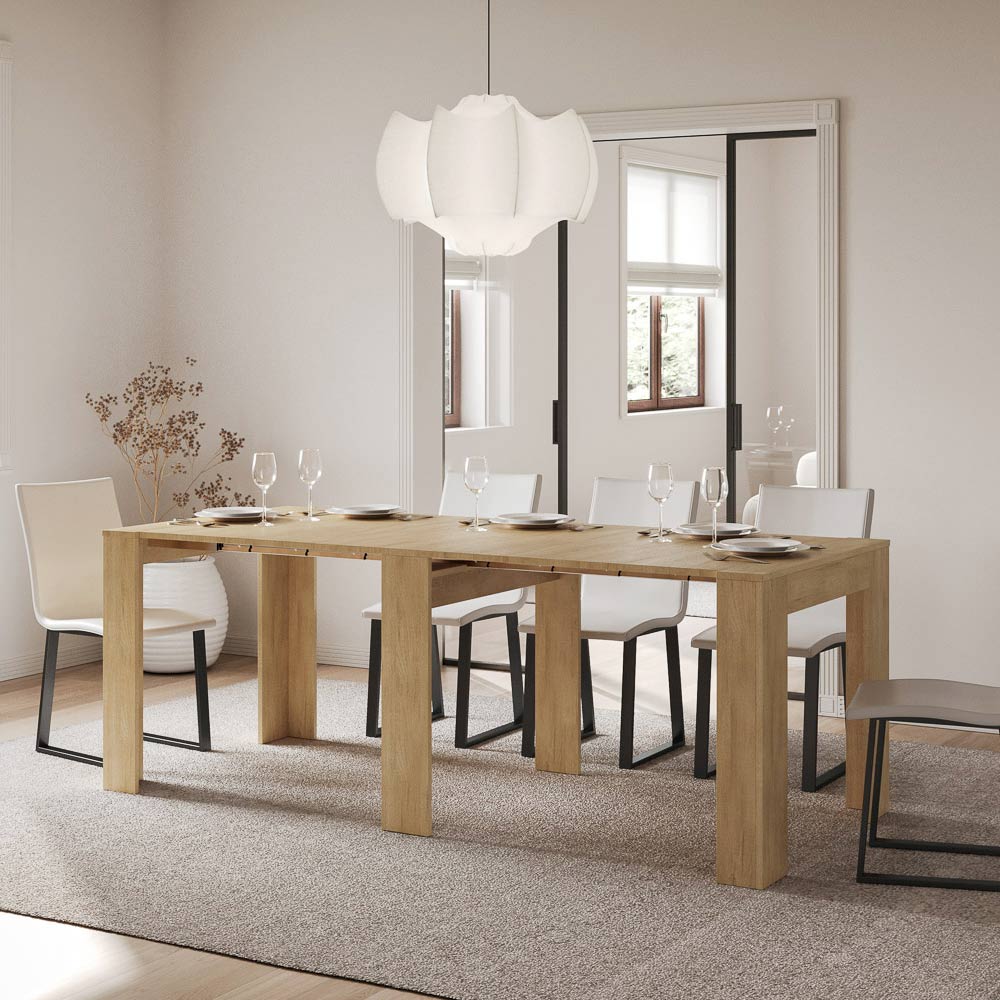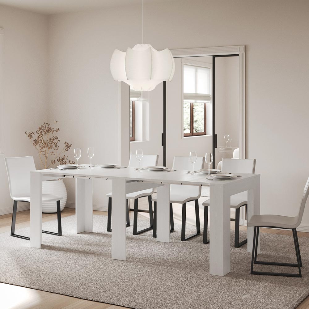 Esta consola extensible è el epítome del diseño funcional y minimalista. Su forma elegante y líneas limpias la convierten en una pieza versátil de mueble, ideal para cualquier espacio, desde la entrada hasta el salón, ofreciendo una imagen de espacio y orden. La mesa consola se expande con facilidad, transformándose de un discreto mueble a una práctica mesa de comedor, perfecta para recibir a amigos y familiares en ocasiones especiales. Esta versatilidad la convierte en una opción ideal para quienes viven en espacios reducidos pero no quieren sacrificar funcionalidad y estilo.