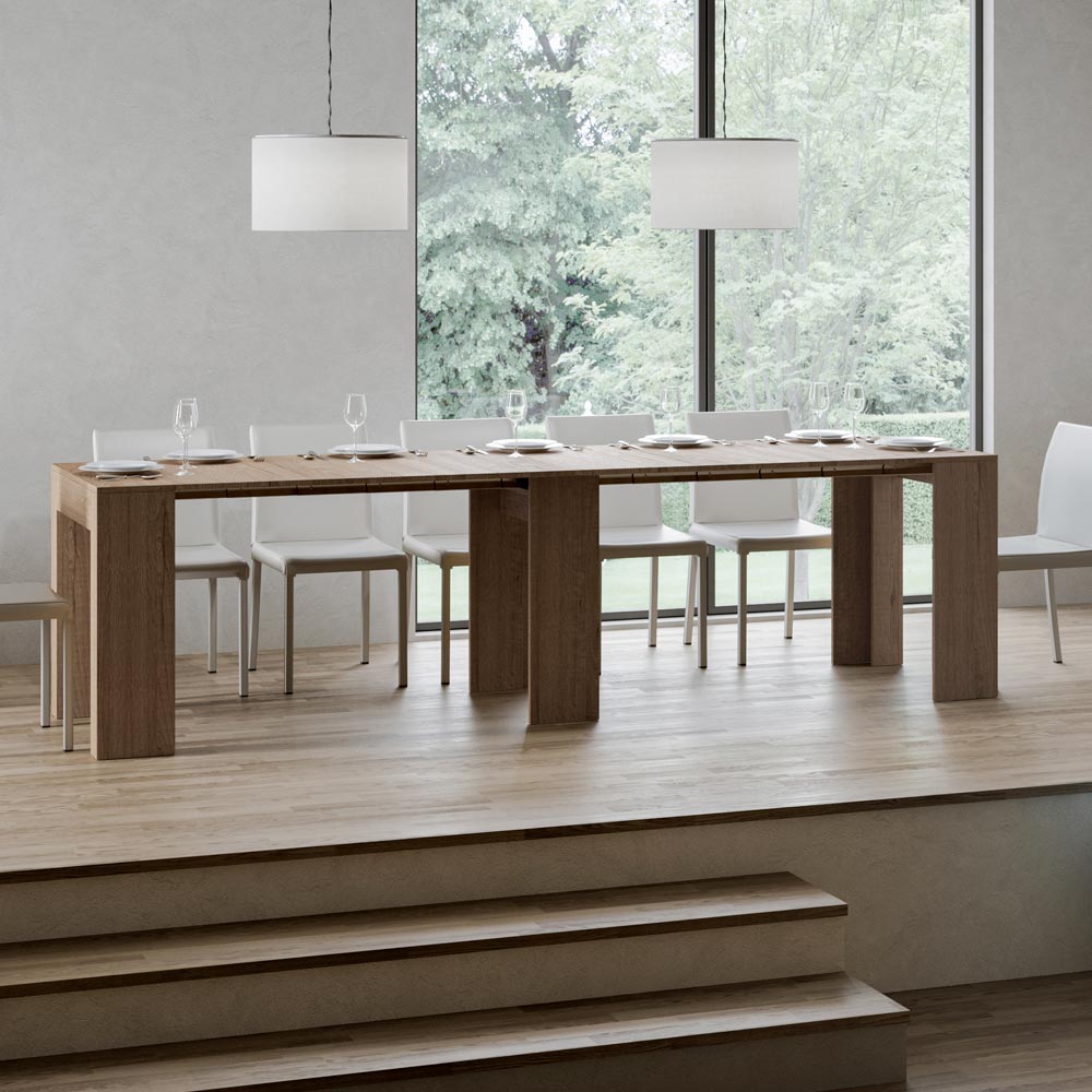 Esta consola extensible es una obra maestra de diseño contemporáneo e intuitiva funcionalidad. La madera amueblada superior y los laterales ofrecen una sensación luminosa y abierta, ideal para quienes buscan crear un espacio a la vez aireado y moderno. Su estética esencial y limpia la hace apta para cualquier ambiente, perfecta para encajar en un diseño minimalista o como contraste en uno más colorido y vivo.
