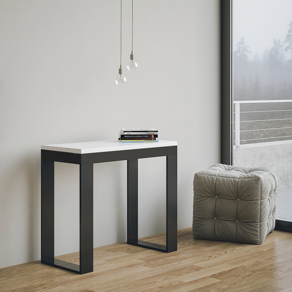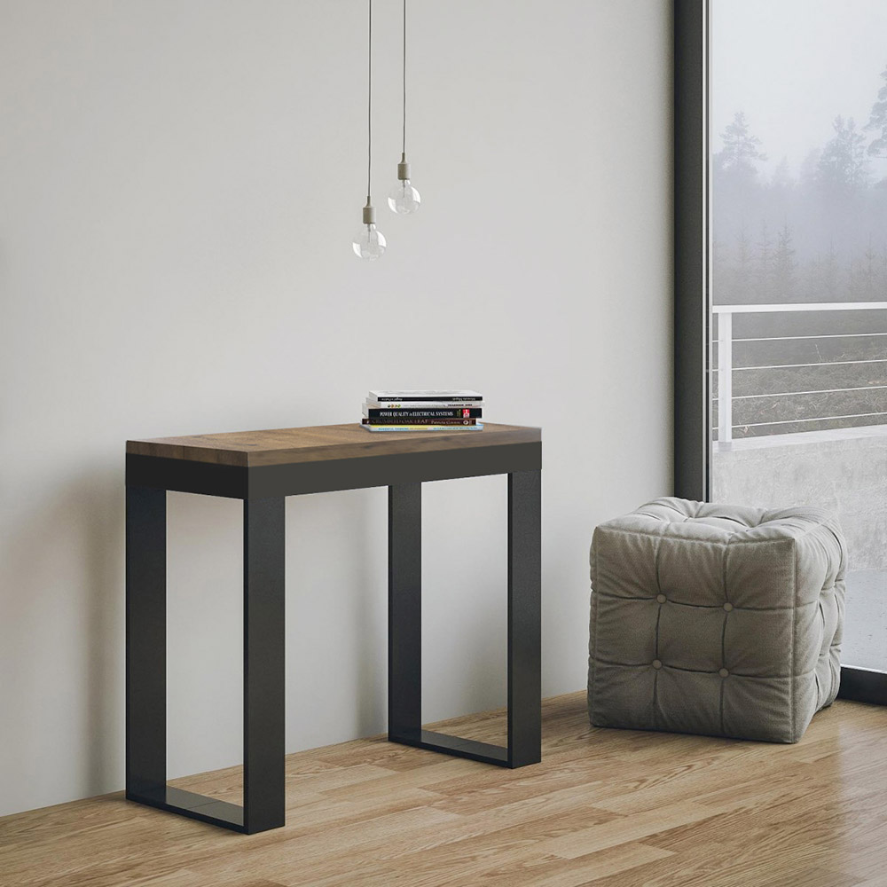 Su estructura es robusta y bien construida, lo que garantiza que pueda soportar el uso diario y que sus extensiones puedan maniobrarse con facilidad. A pesar de su diseño aparentemente sencillo, esta mesa consola se transforma en una pieza central en cualquier habitación, perfecta para añadir un toque de sofisticación moderna.