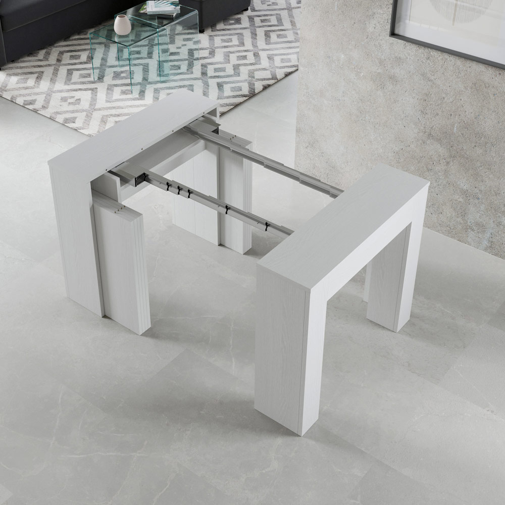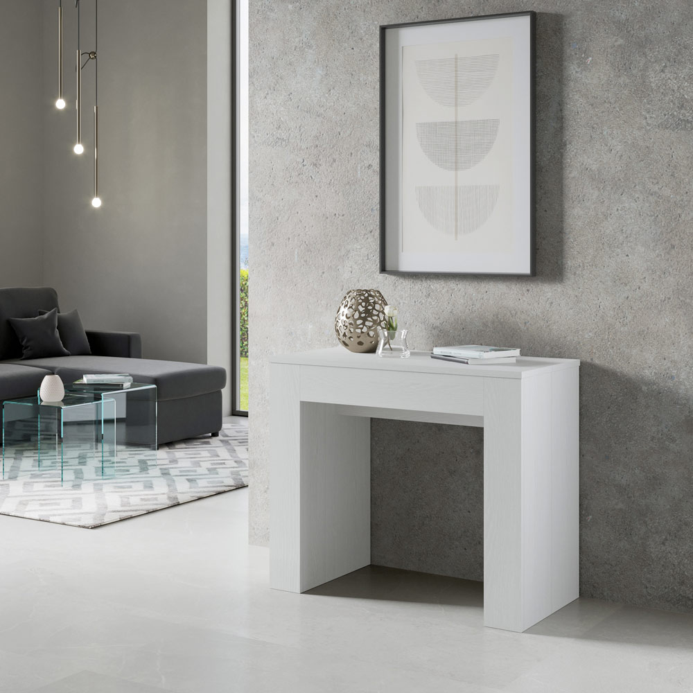 Esta consola extensible es una expresión de funcionalidad y estilo, perfecta para quienes aprecian la calidez y riqueza de la madera. El tono profundo y el veteado de la madera se unen para crear un ambiente acogedor y con clase en cualquier habitación. Diseñada con extensiones internas, esta mesa consola ofrece una solución espacial inteligente que se adapta a las necesidades de quienes viven en habitaciones pequeñas pero no quieren sacrificar la hospitalidad y el confort. Cuando no è extendida, su forma compacta è ideal para decorar su espacio con elegancia, mientras que su transformación la hace perfecta para ocasiones que requieran más espacio, como cenas con amigos o reuniones familiares.