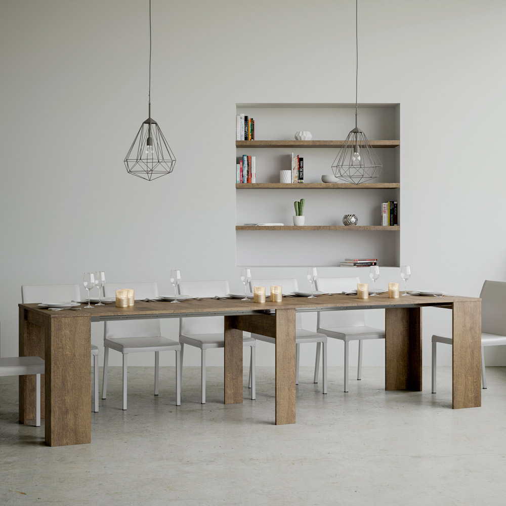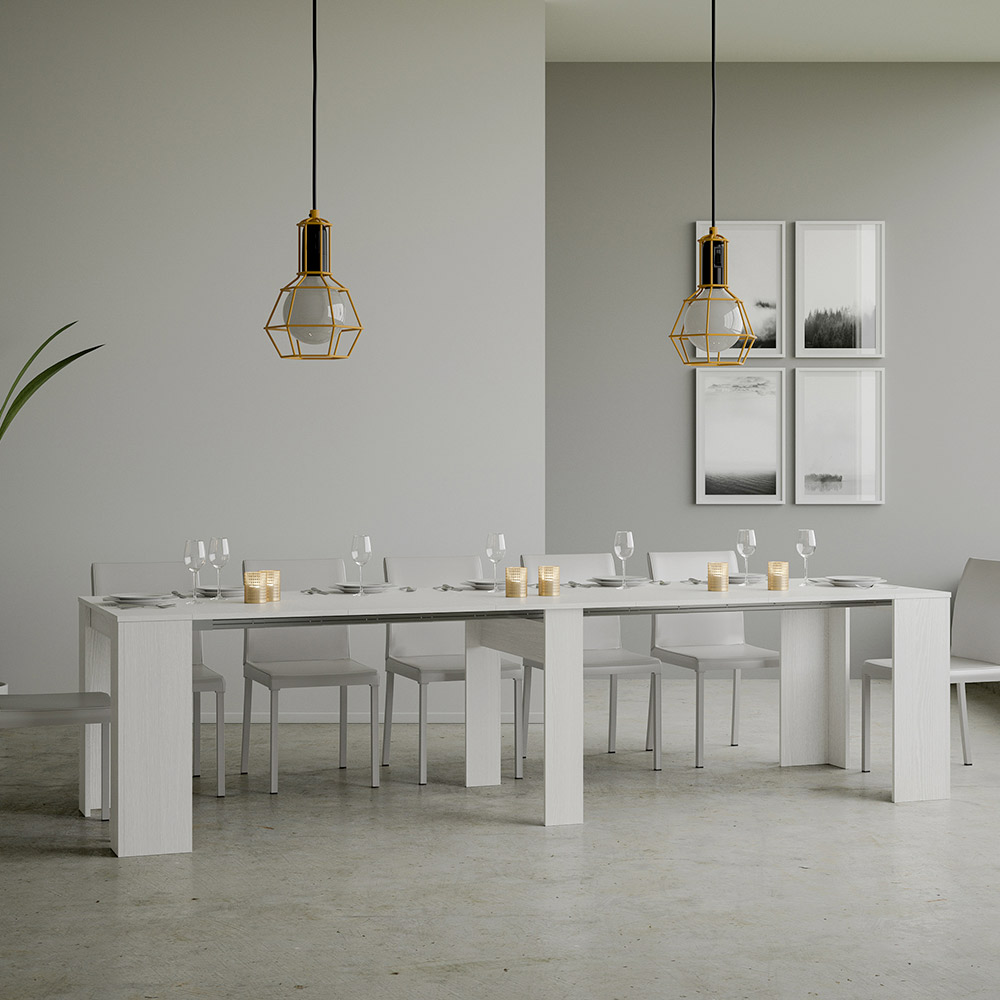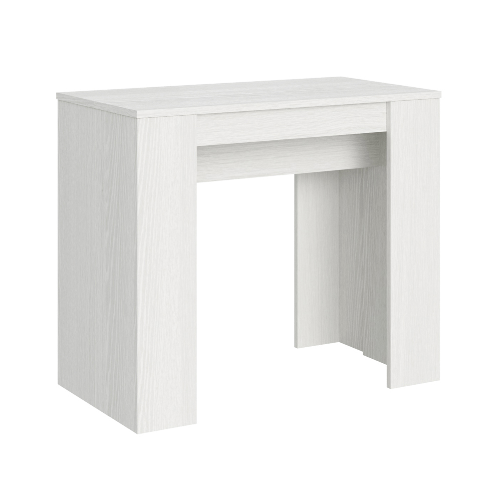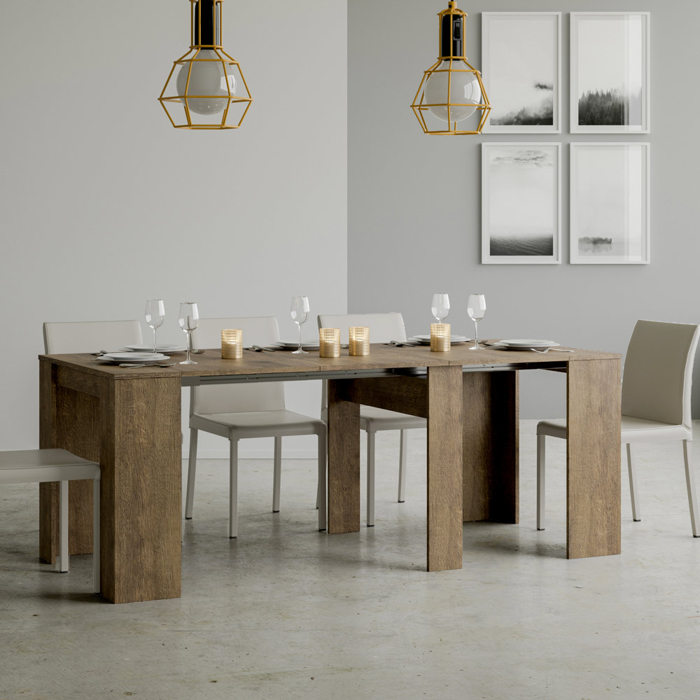 Esta consola extensible es una obra maestra de diseño contemporáneo y funcionalidad intuitiva. La parte superior y los laterales de madera maciza ofrecen una sensación luminosa y abierta, ideal para quienes buscan crear un espacio a la vez aireado y moderno. Su estética esencial y limpia la hace apta para cualquier ambiente, perfecta para encajar en un diseño minimalista o como contraste en uno más colorido y vivo.