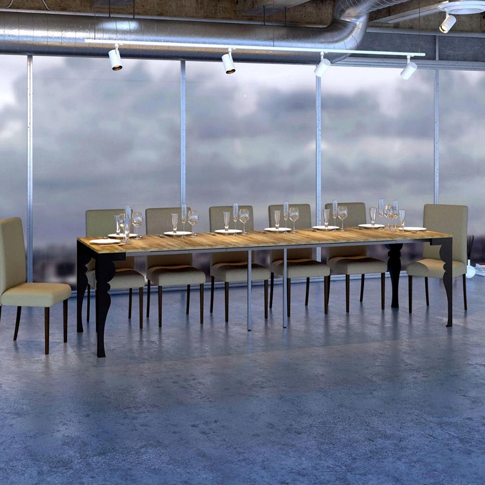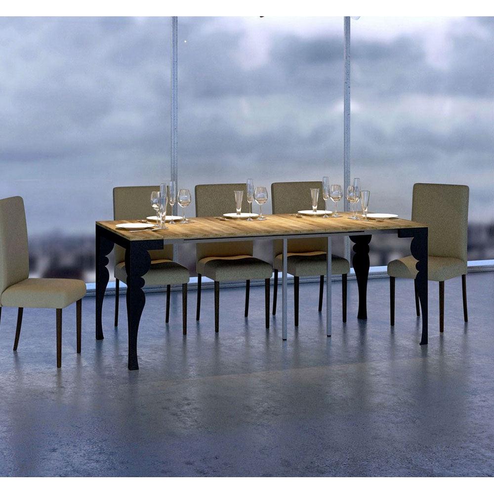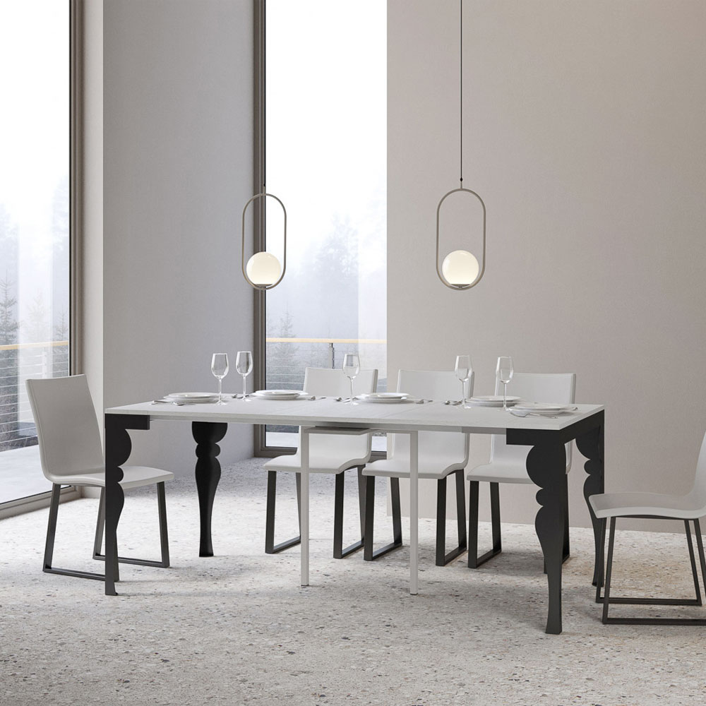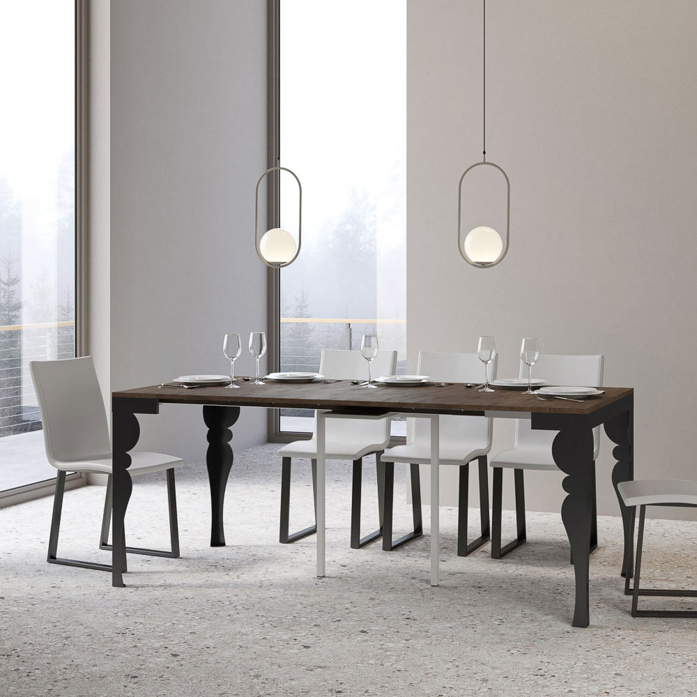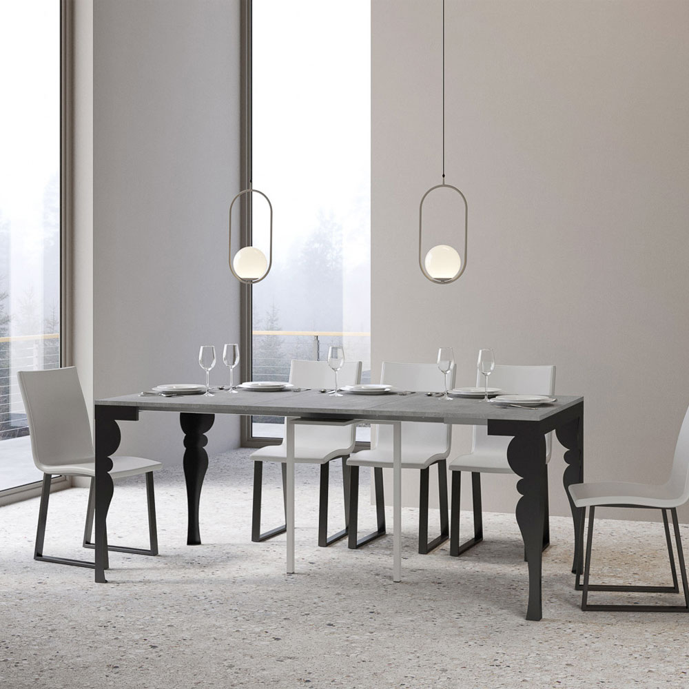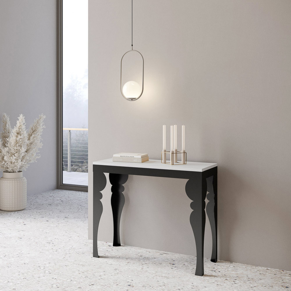El contraste entre el gris antracita de las patas y la madera de la encimera crea un diálogo visualmente estimulante, haciendo de este mueble una elección sofisticada para cualquier estancia. Perfecta como mueble de entrada o como superficie adicional en una sala de estar, la mesa consola se transforma con facilidad, extendiéndose para convertirse en la pieza central de un comedor, lista para acoger momentos memorables.