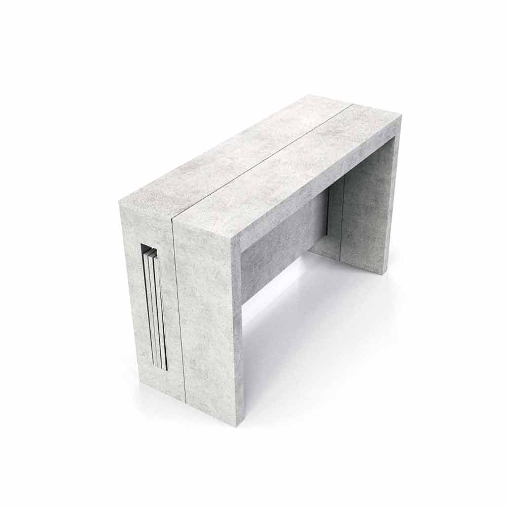 Ussana está fabricado con panel de melamina Cleaf, en los acabados efecto óxido o aspecto cemento. Las prácticas extensiones se pueden almacenar en el marco de la consola.