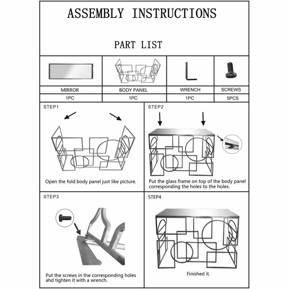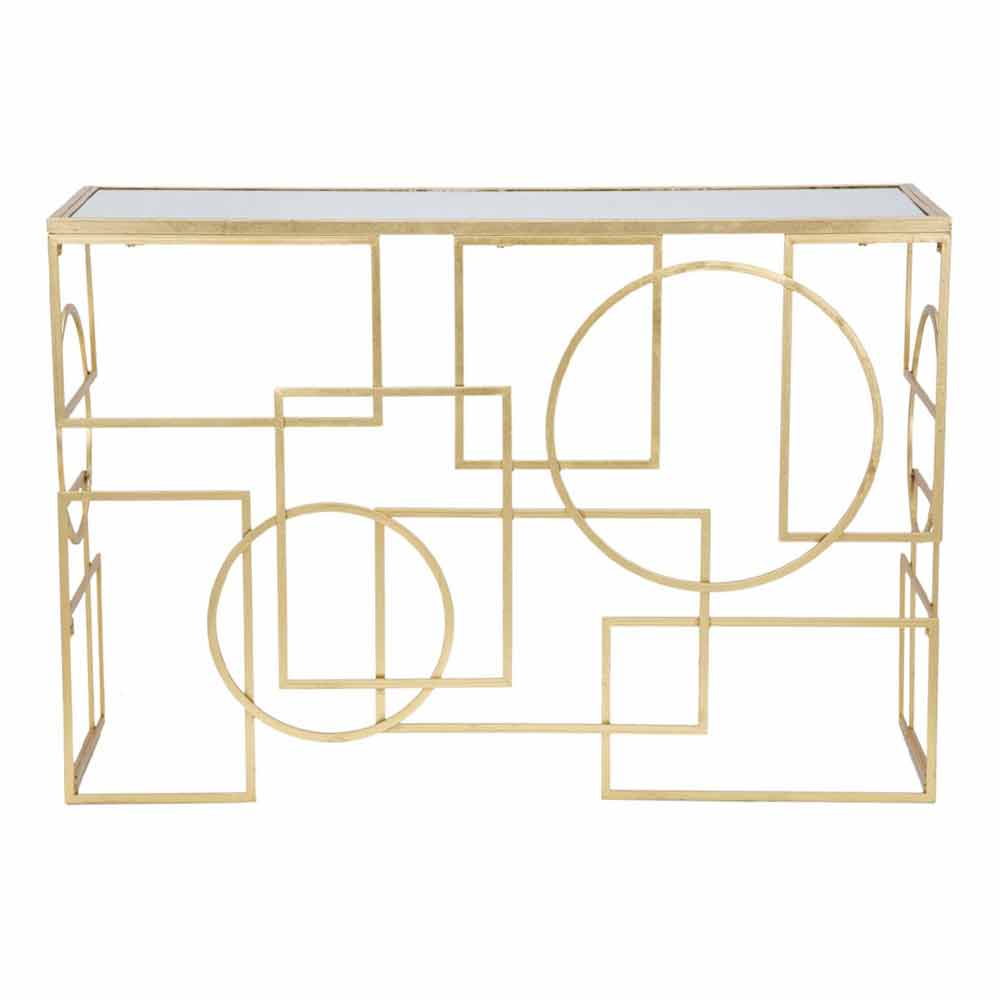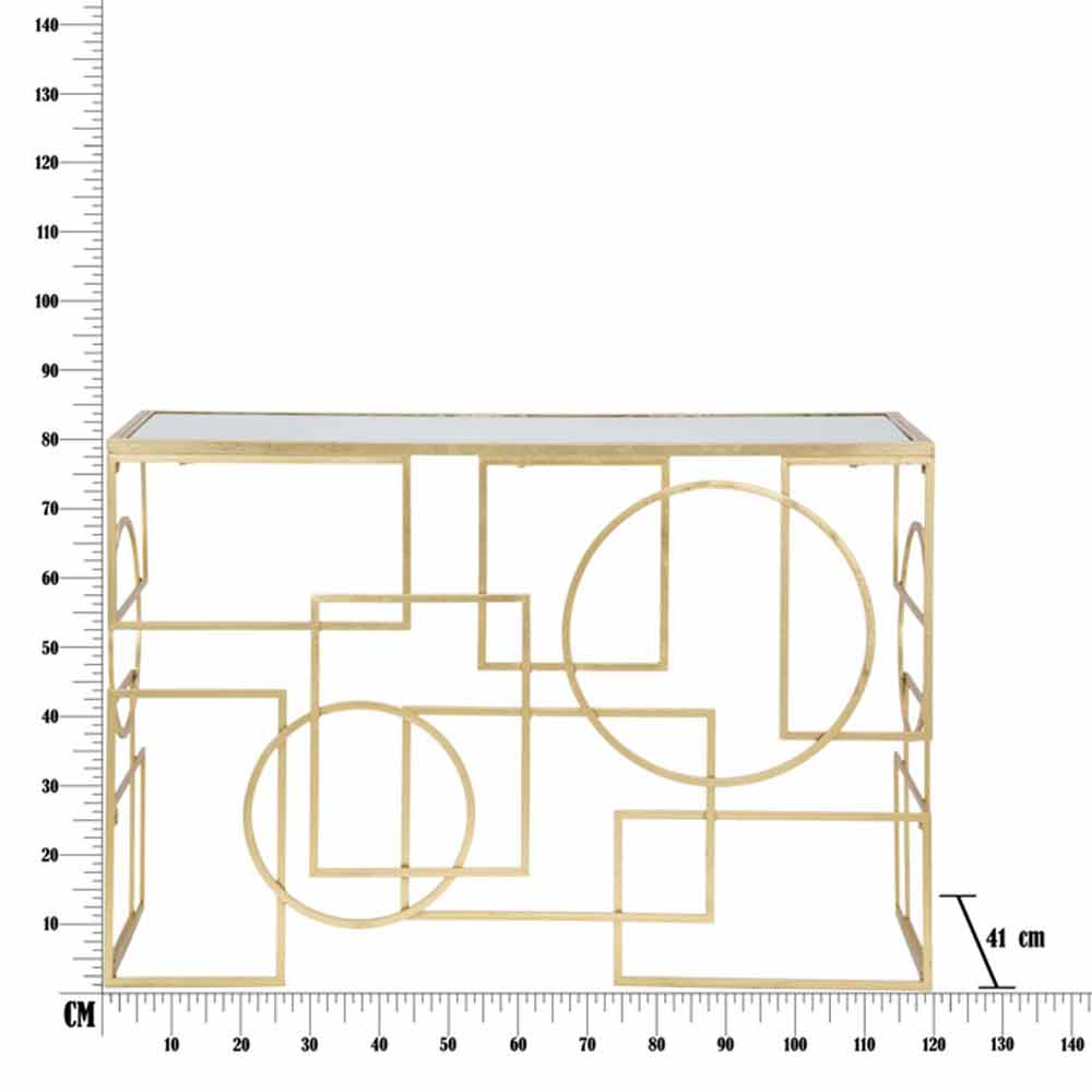 Mesa consola rectangular moderna 120X41X81 cm en hierro con tapa de espejo.