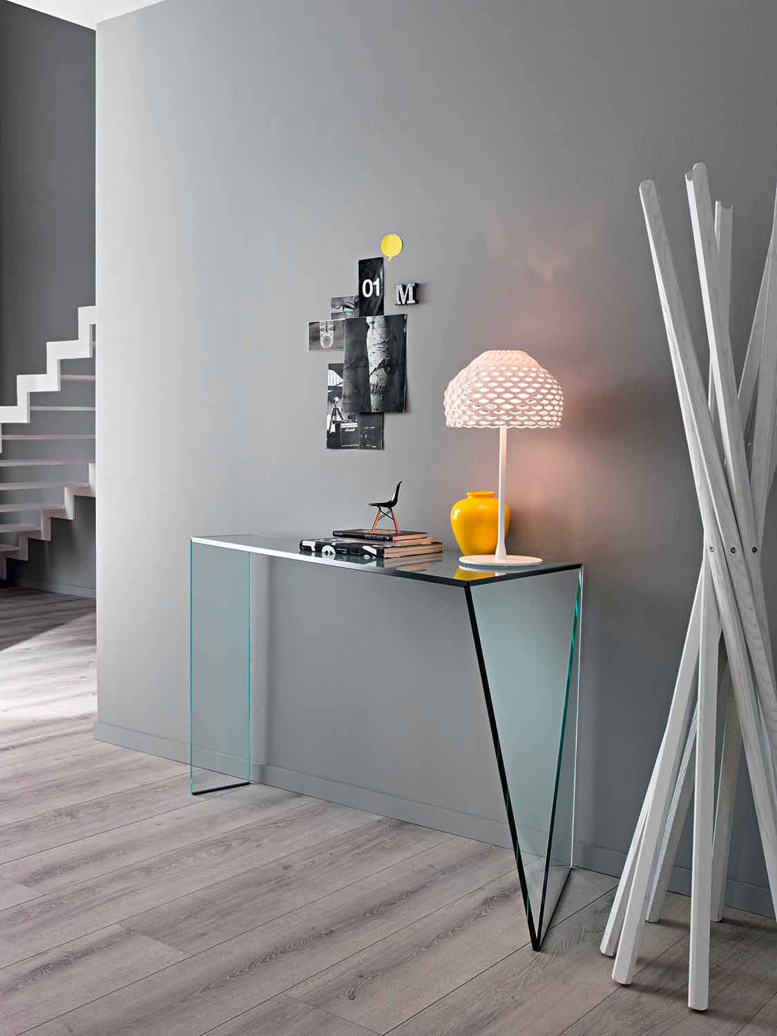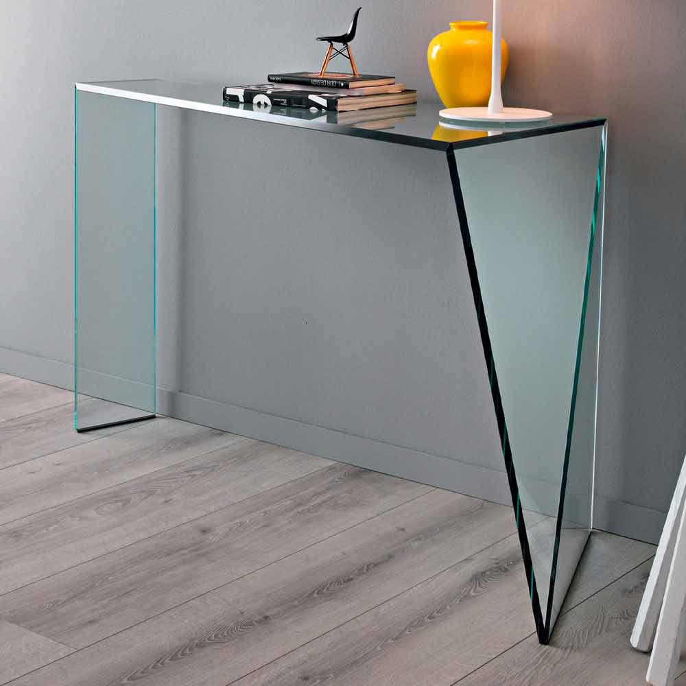 Consola moderna de vidrio trasparente hecha a mano en Italia.