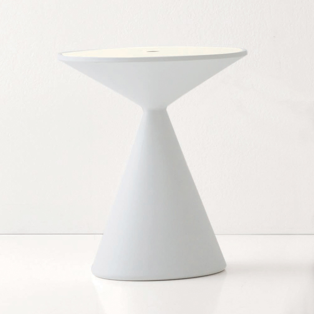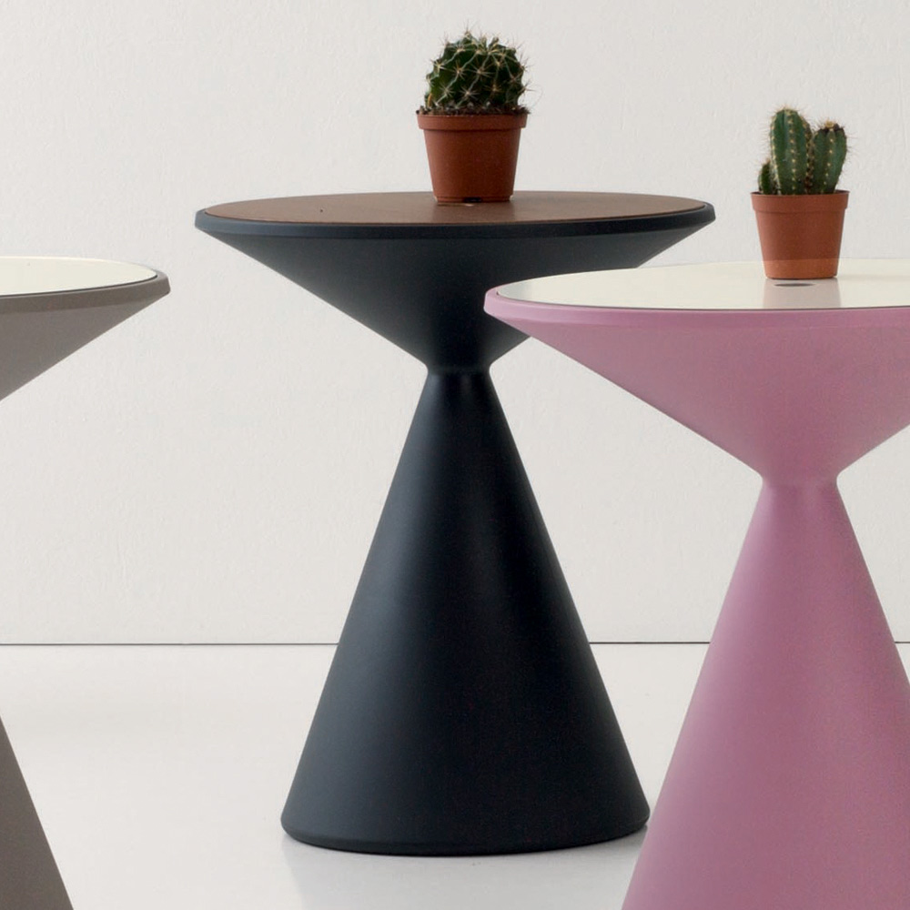 Mesa de centro redonda en polietileno de colores con contenedor interno fabricada en Italia.