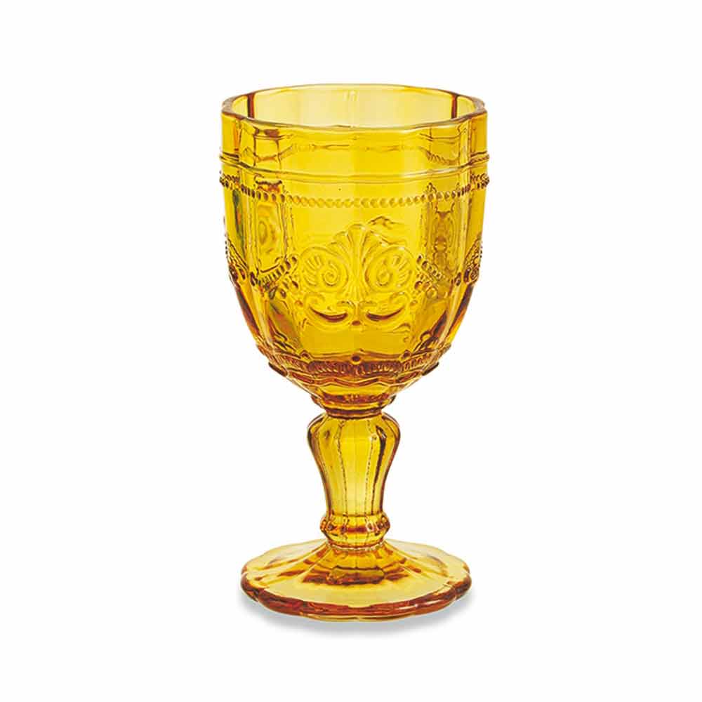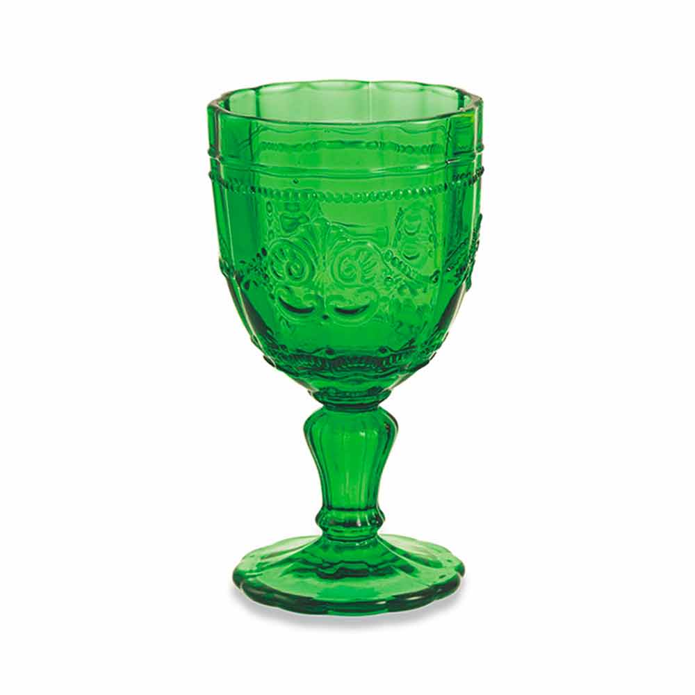 Copas de vino de colores fabricadas en vidrio de diferentes colores y adornos arabescos, 12 piezas.