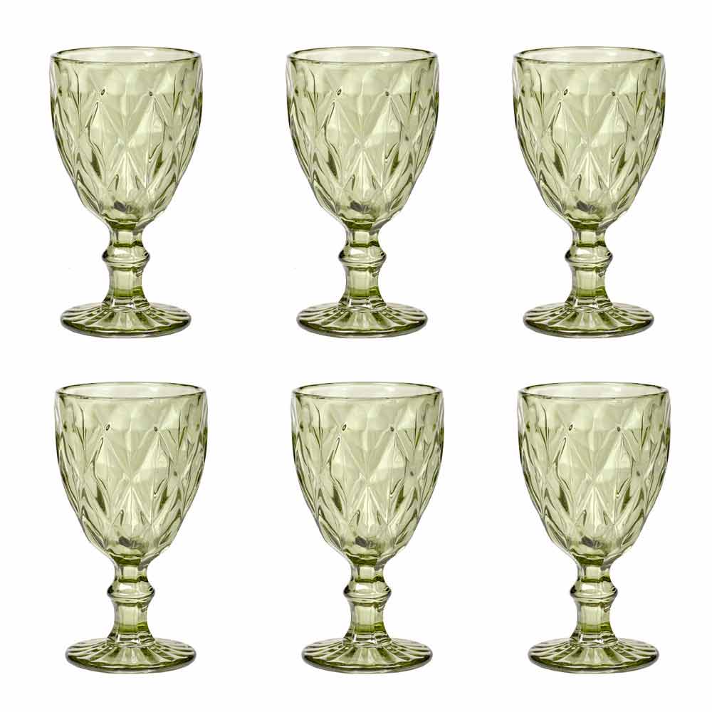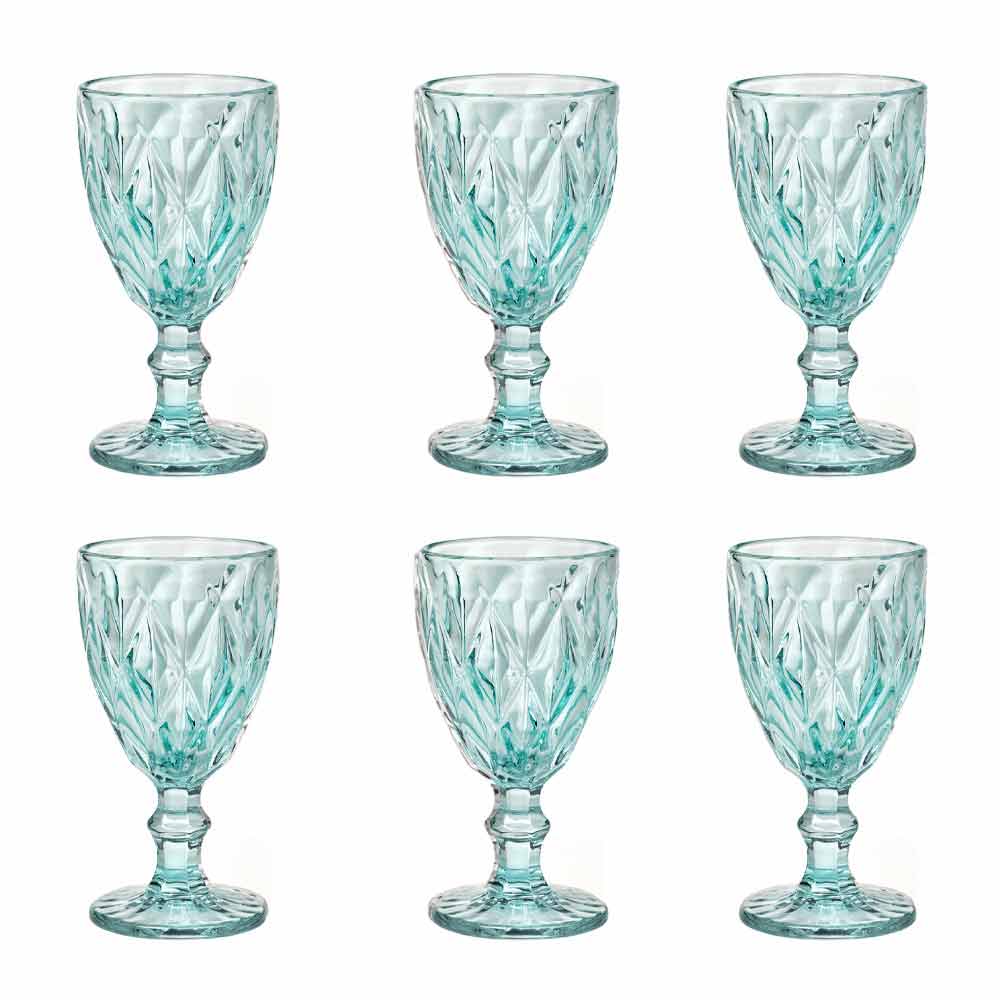 Moderno y colorido diseño de copas de vino en vidrio decorado, 12 piezas.